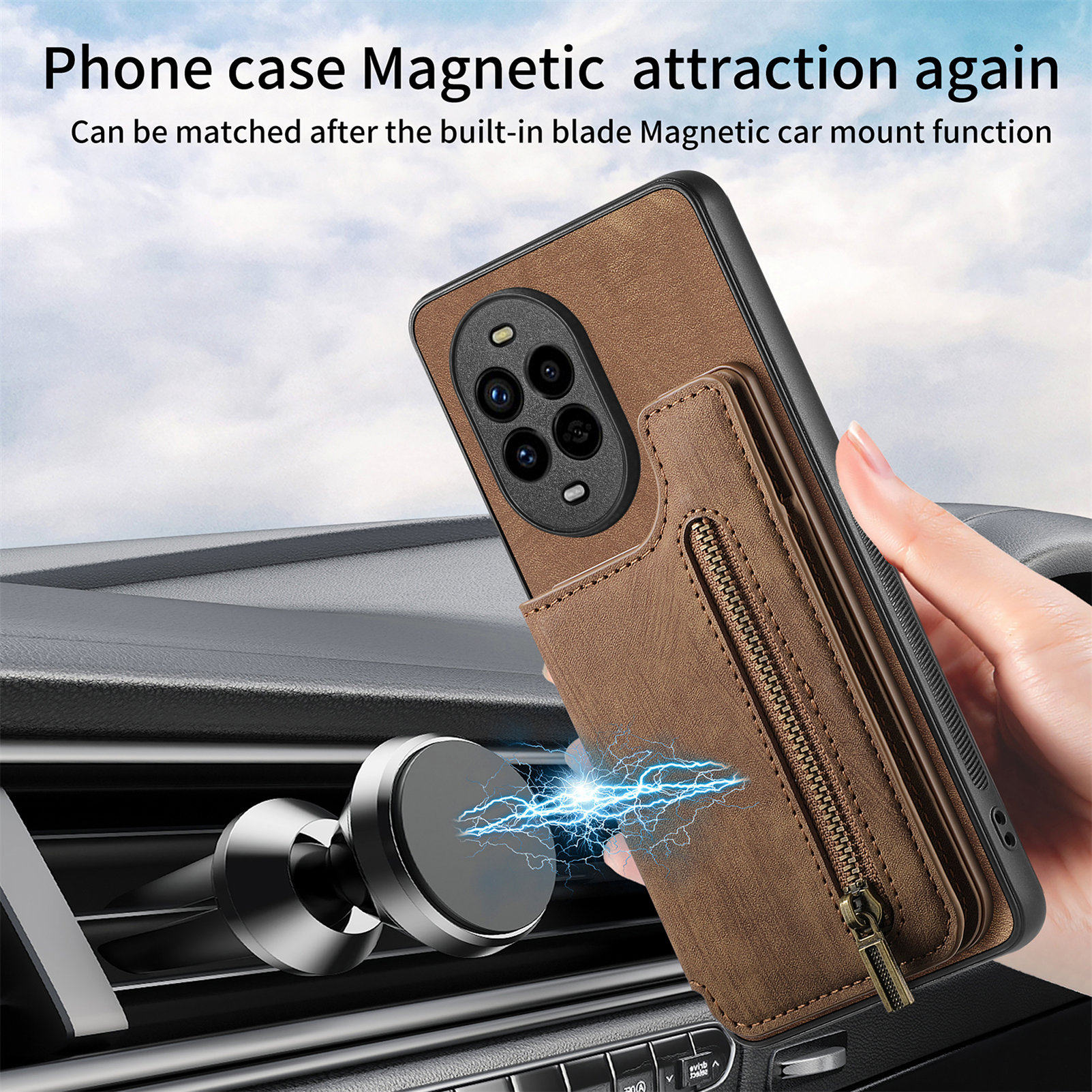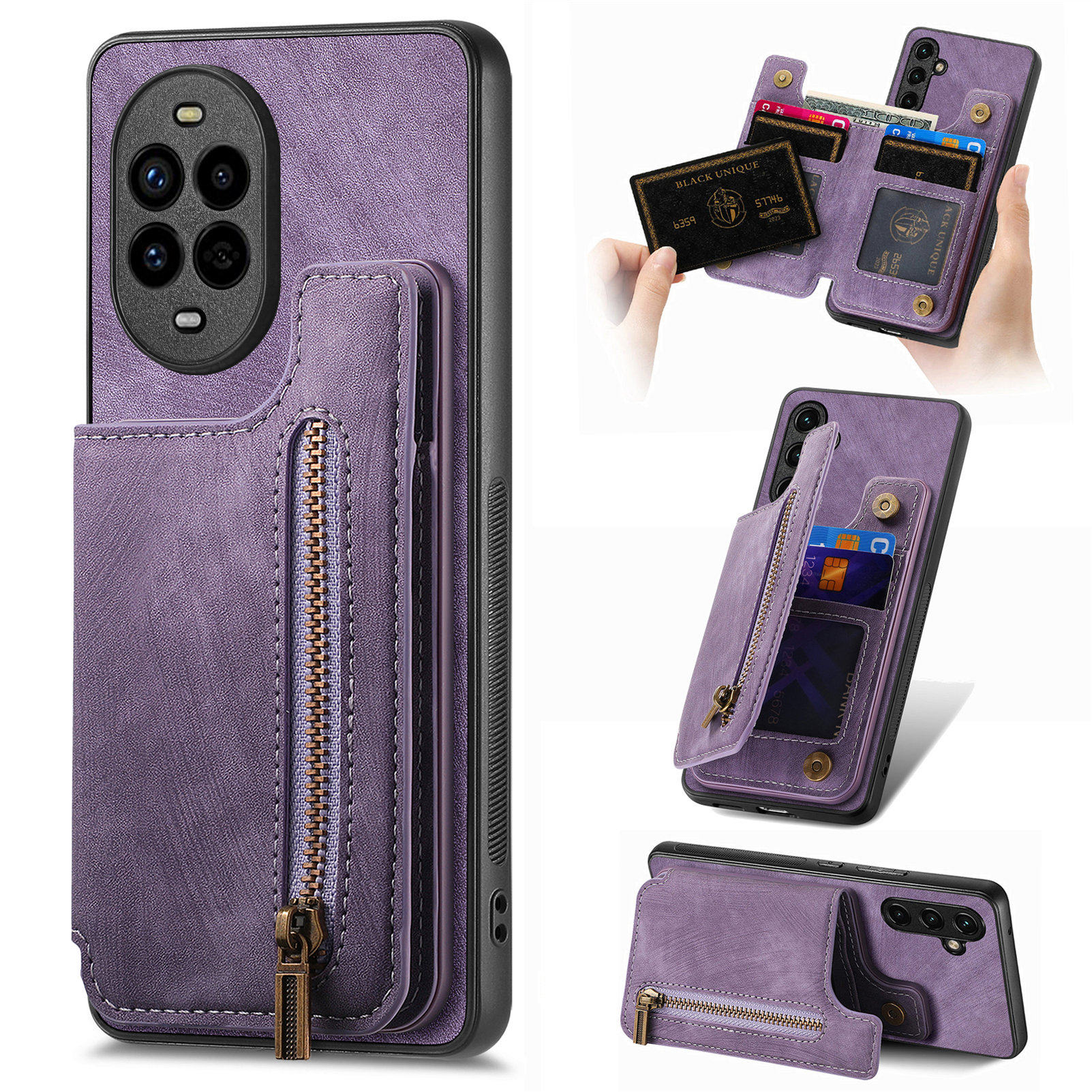华为Pura70Ultra钱包式适用华为Nova14Pro带卡包400pro手机壳荣耀500Pro支架90Lite保护套零钱拉链Pura80Pro
