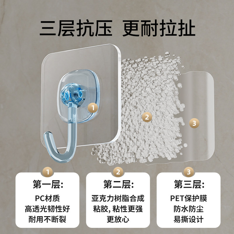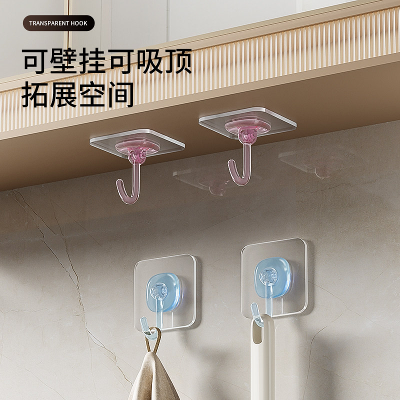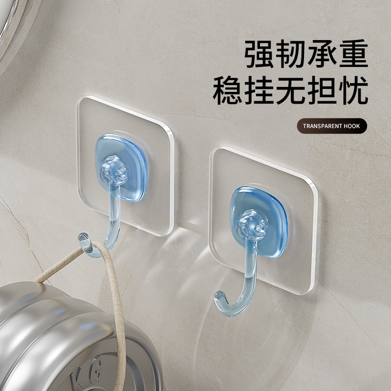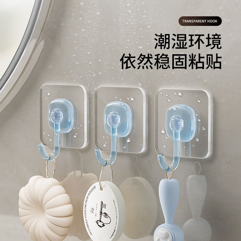挂钩强力粘胶免打孔钩子浴室卫生间防水挂钩客厅厨房通用透明粘钩