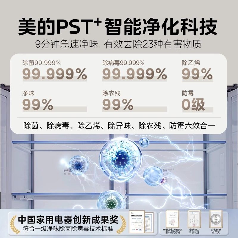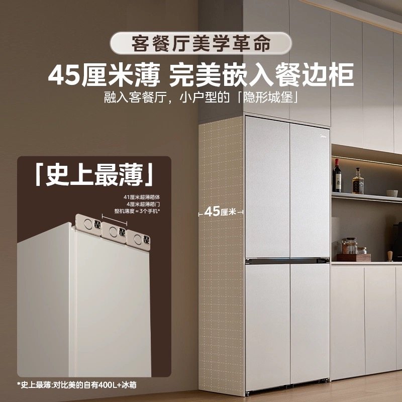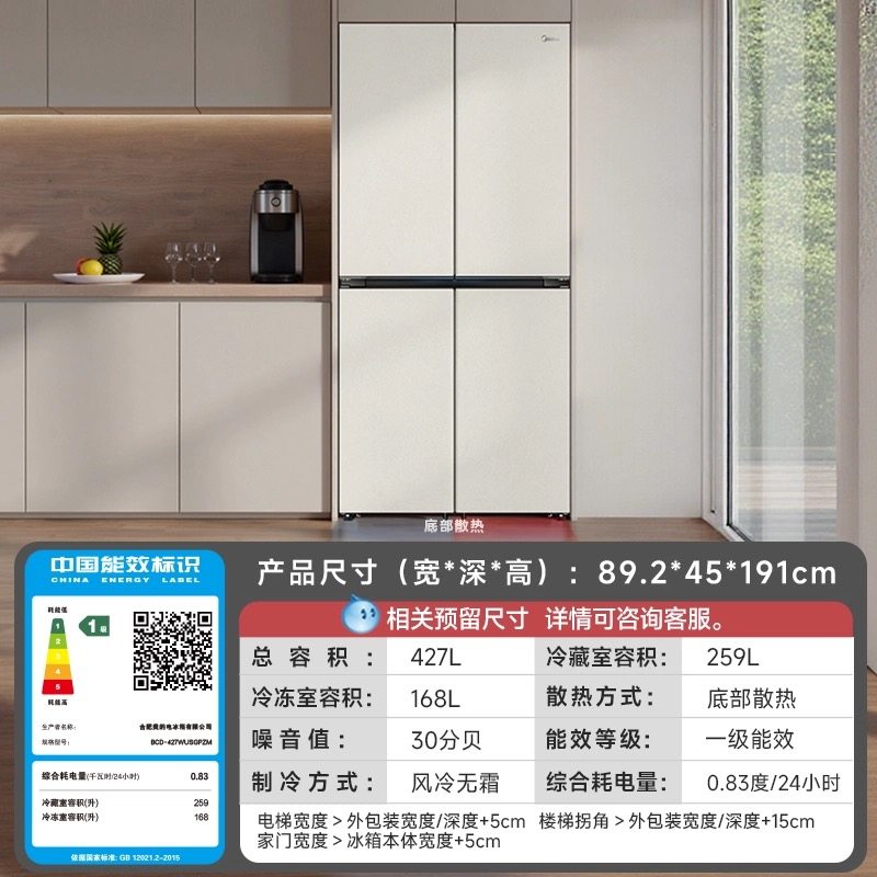 美的餐边柜冰箱427L家用电冰箱45cm超薄零嵌十字双开四门风冷无霜