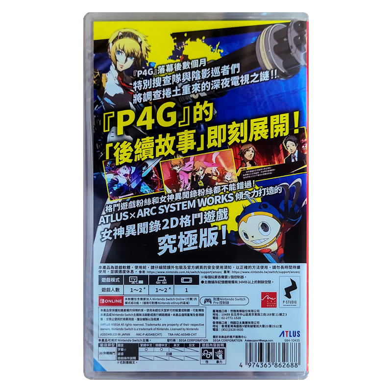 香港直邮 港行中文原封 任天堂NS卡带 女神异闻录4无敌究极背桥摔 P4U 格斗游戏 Nintendo Switch 游戏 现货