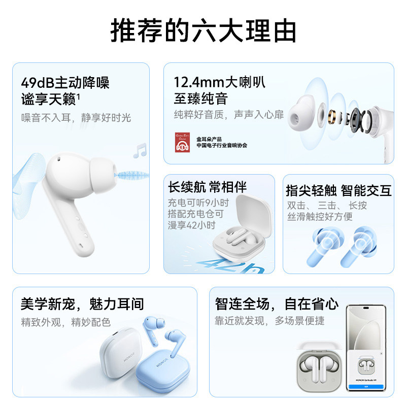 荣耀Earbuds X9无线蓝牙耳机原装入耳式主动降噪官方旗舰正品新款