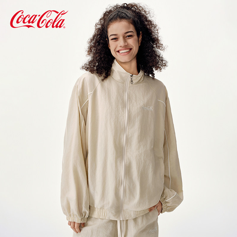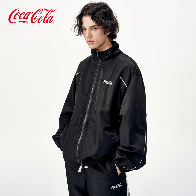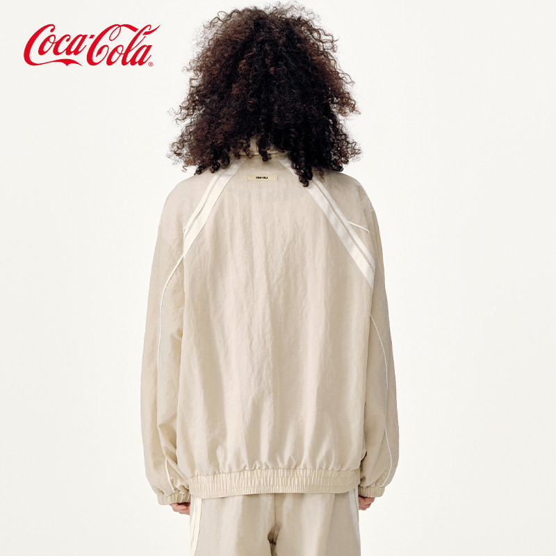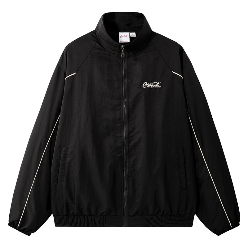 Coca-Cola/可口可乐双织带滚边条纹字母刺绣网眼里布立领外套夹克