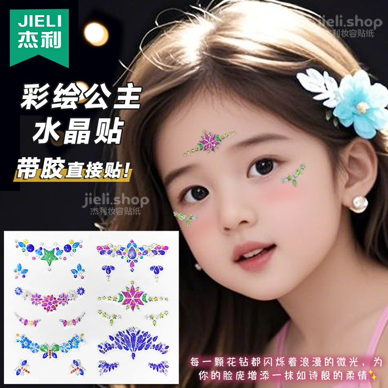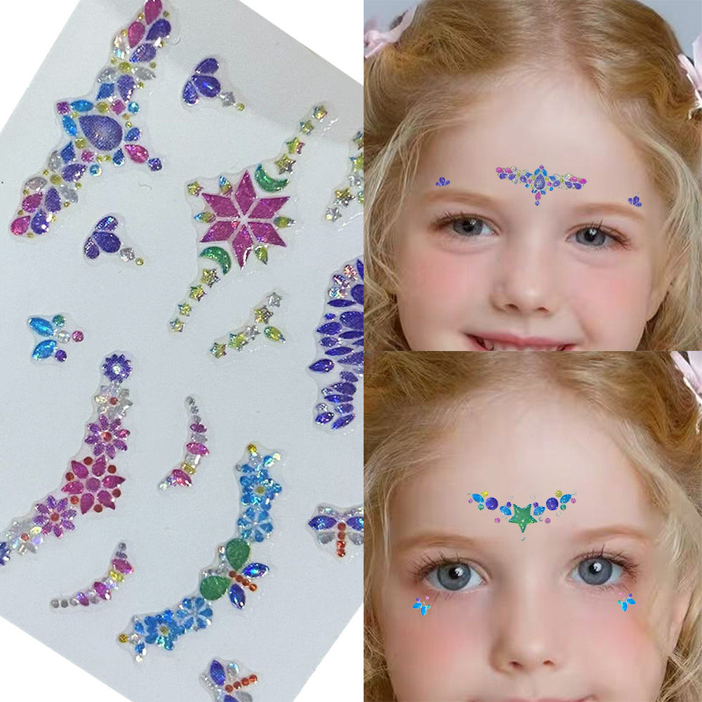 六一儿童节演出化妆亮片脸上妆容贴纸脸部装饰碎钻眉心贴花幼儿园舞台表演专用彩妆公主玩具芭比娃娃面部饰品