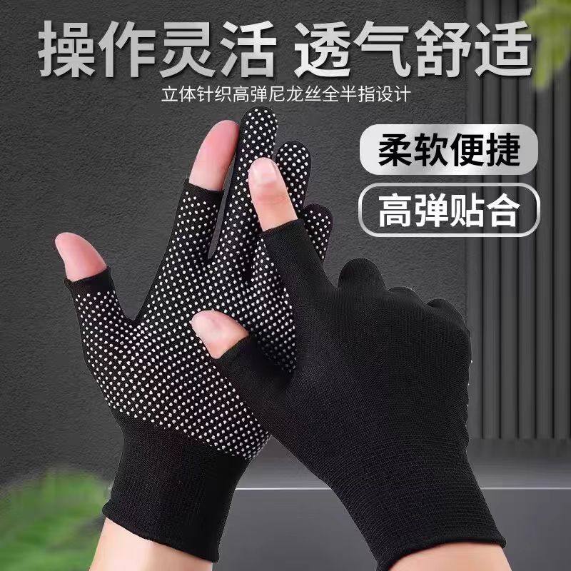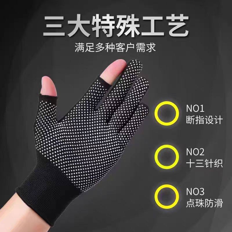 薄款打包手套快递员分拣专用劳保耐磨工作男女干活露二指防滑点胶