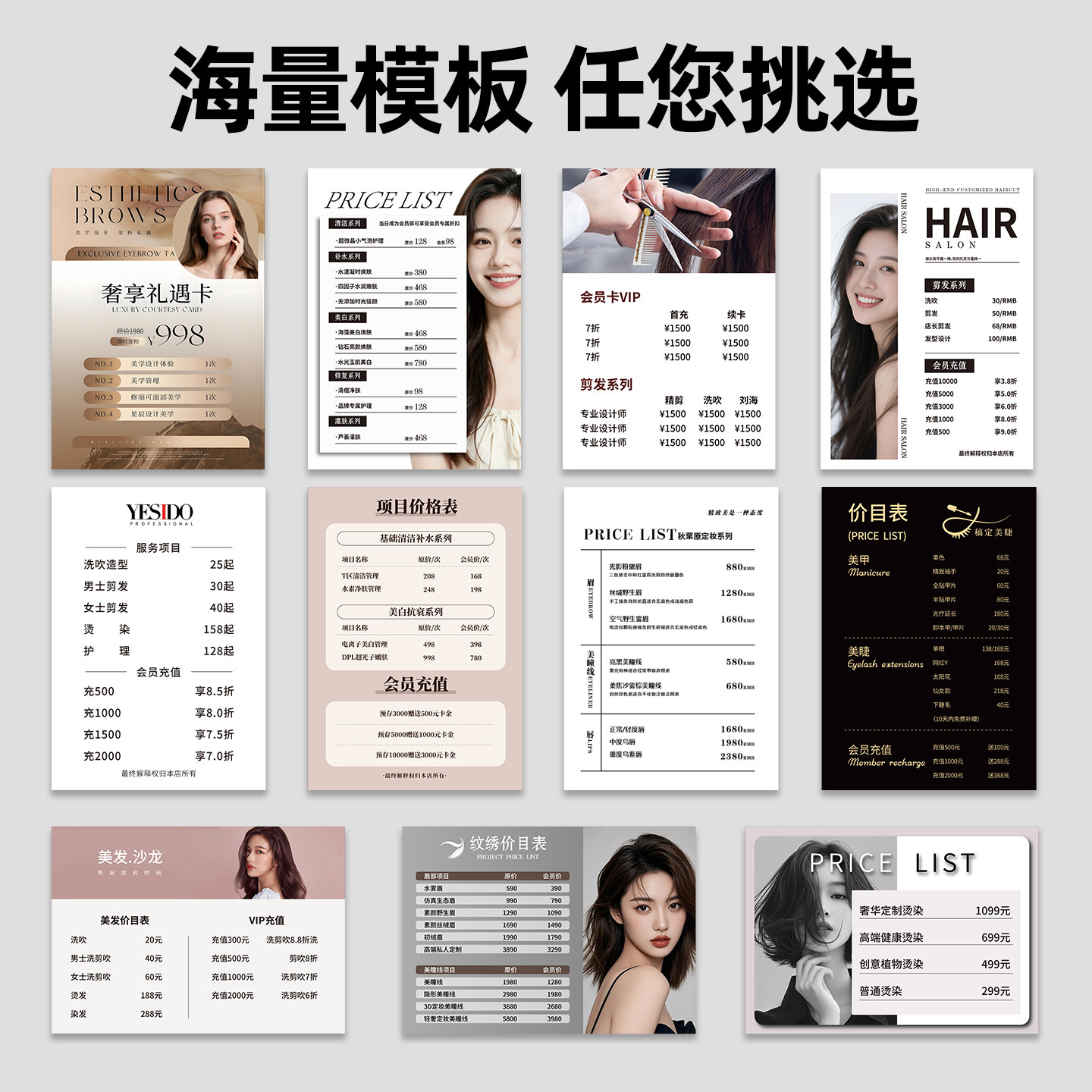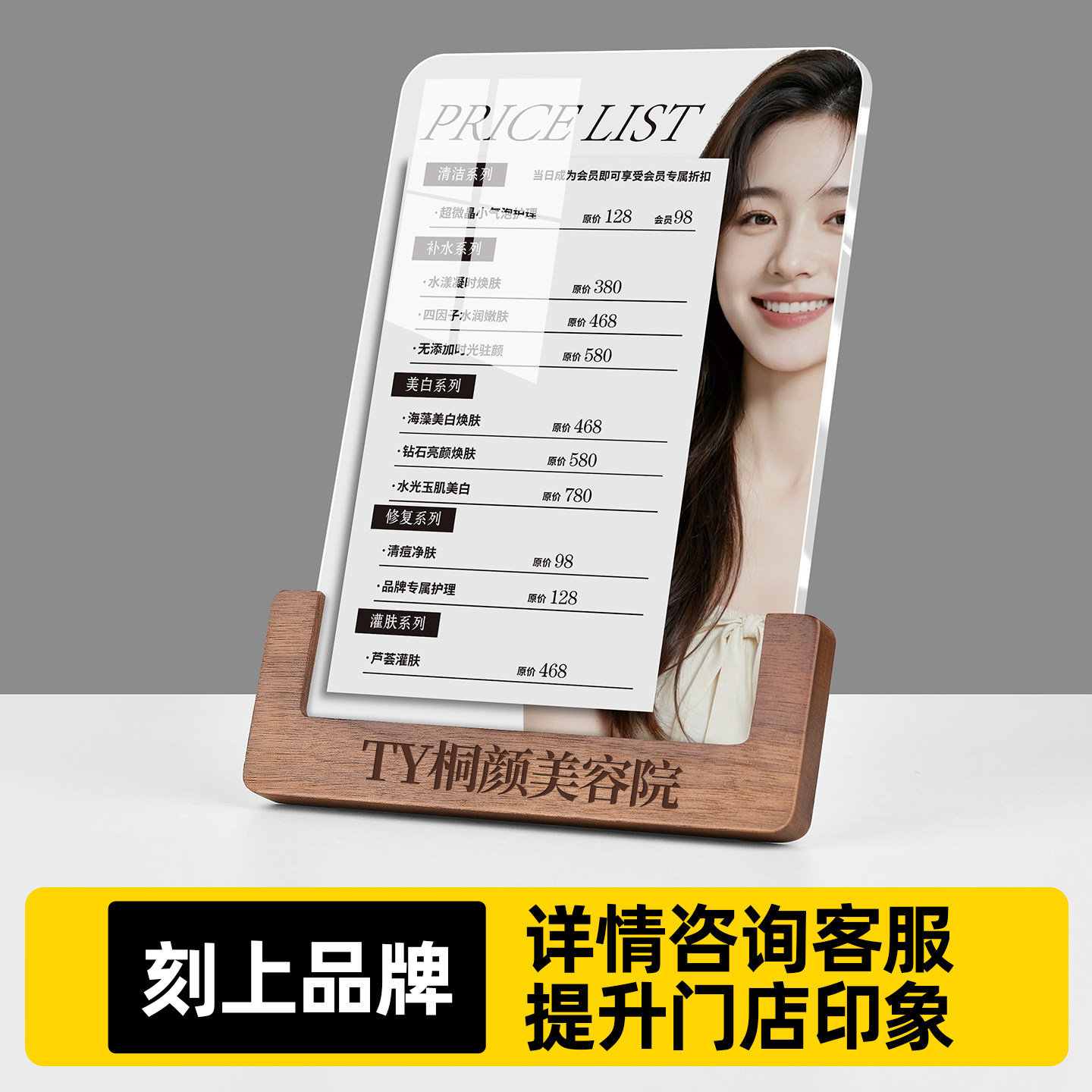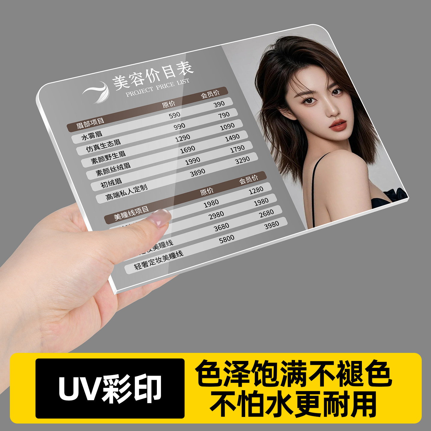 美容院项目标价桌牌设计制作价目表展示牌菜单牌纹绣眉眼唇a4亚克力双面台卡美发美甲美睫价目牌桌面摆台定制