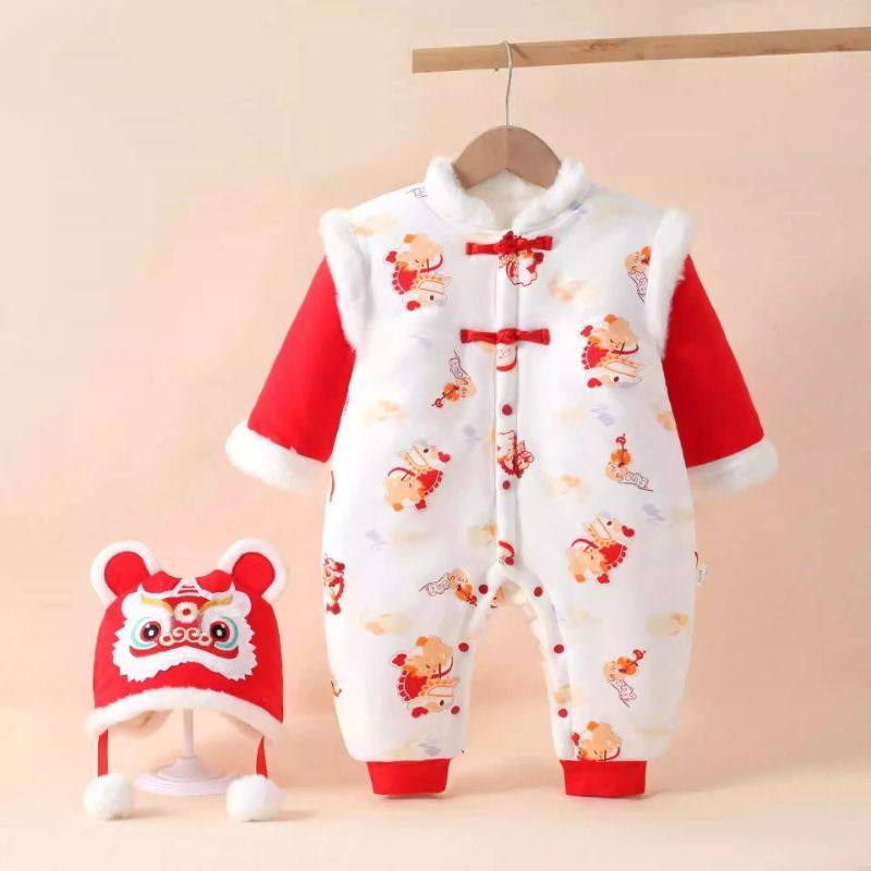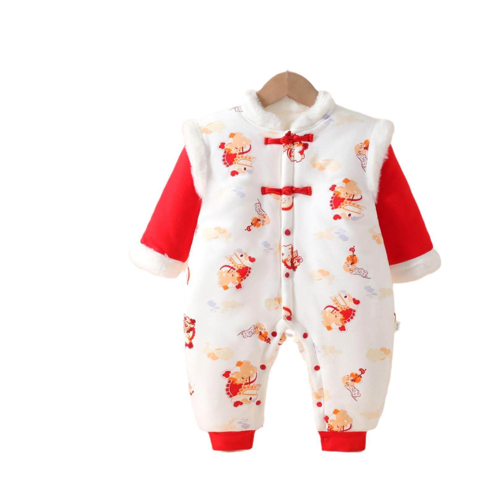 300g夹棉加厚婴儿连体棉袄加绒宝宝外套大红喜庆拜年服周岁满月礼