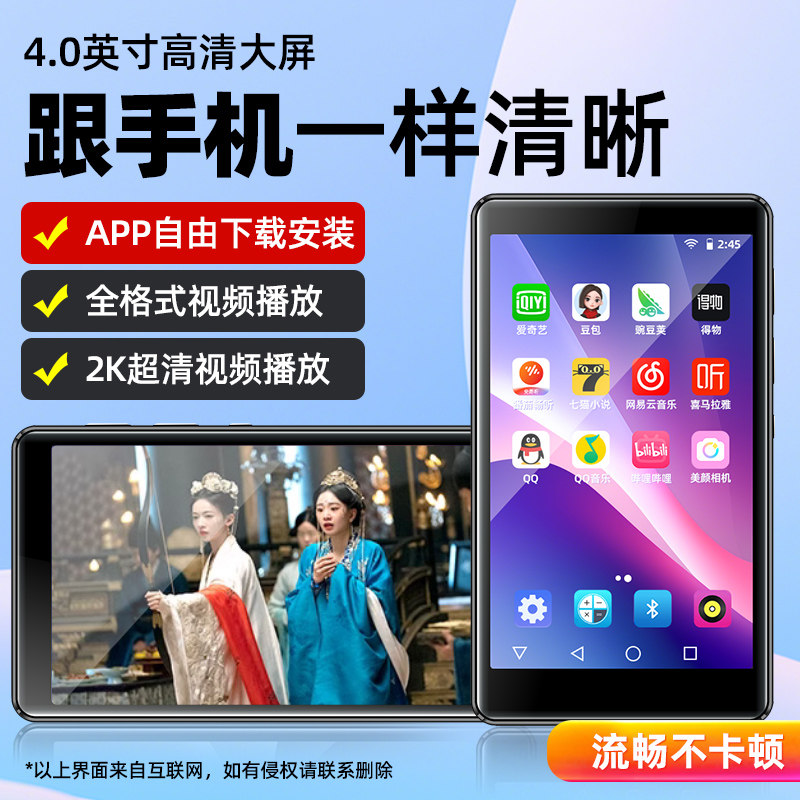 可拍照K08mp3wifi可上网智能mp4联网mp5学生蓝牙电子播放器全面屏