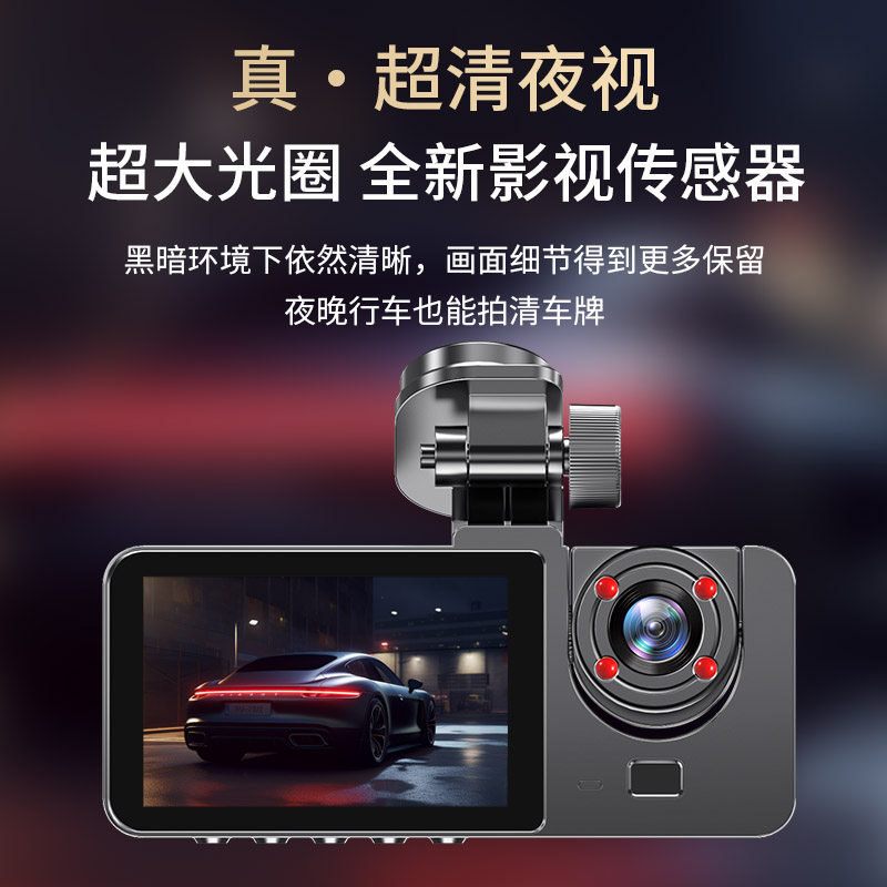 2025新款三录行车记录仪360度全景手机APP互联高清夜视倒车影像