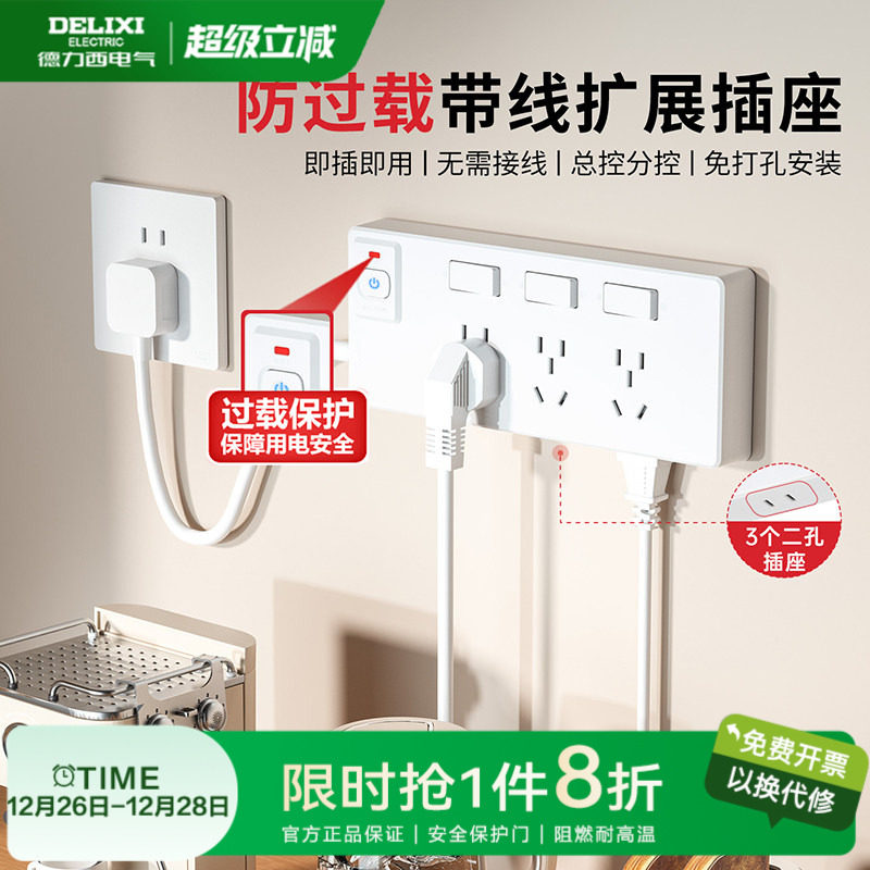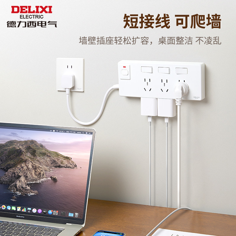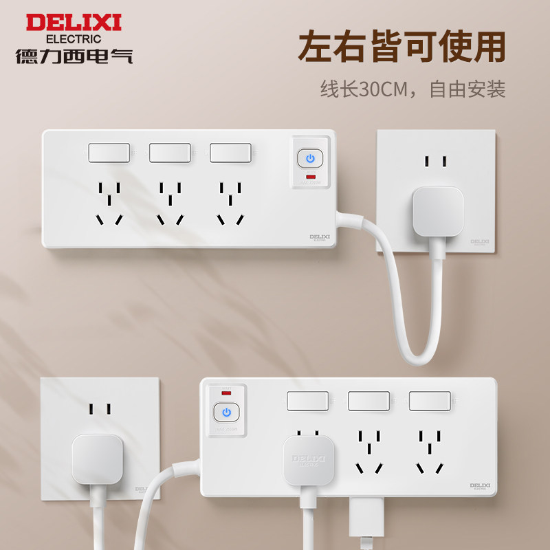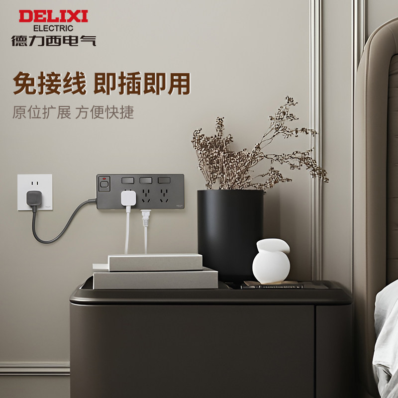 德力西带线扩展插座拓展插排多功能转换器插头防过载插线板排插头
