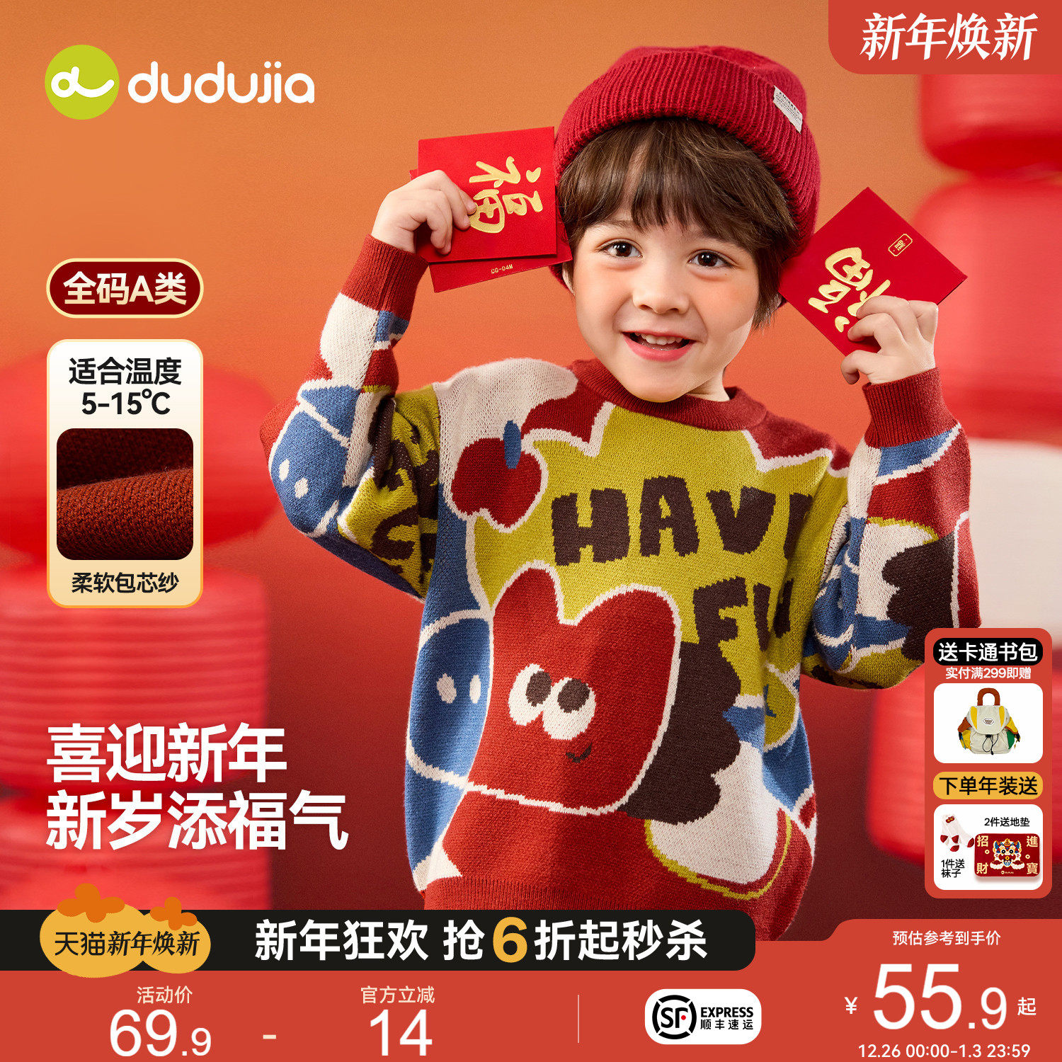 嘟嘟家男童毛衣冬季儿童拜年服宝宝唐装衣服红色上衣女童新年童装