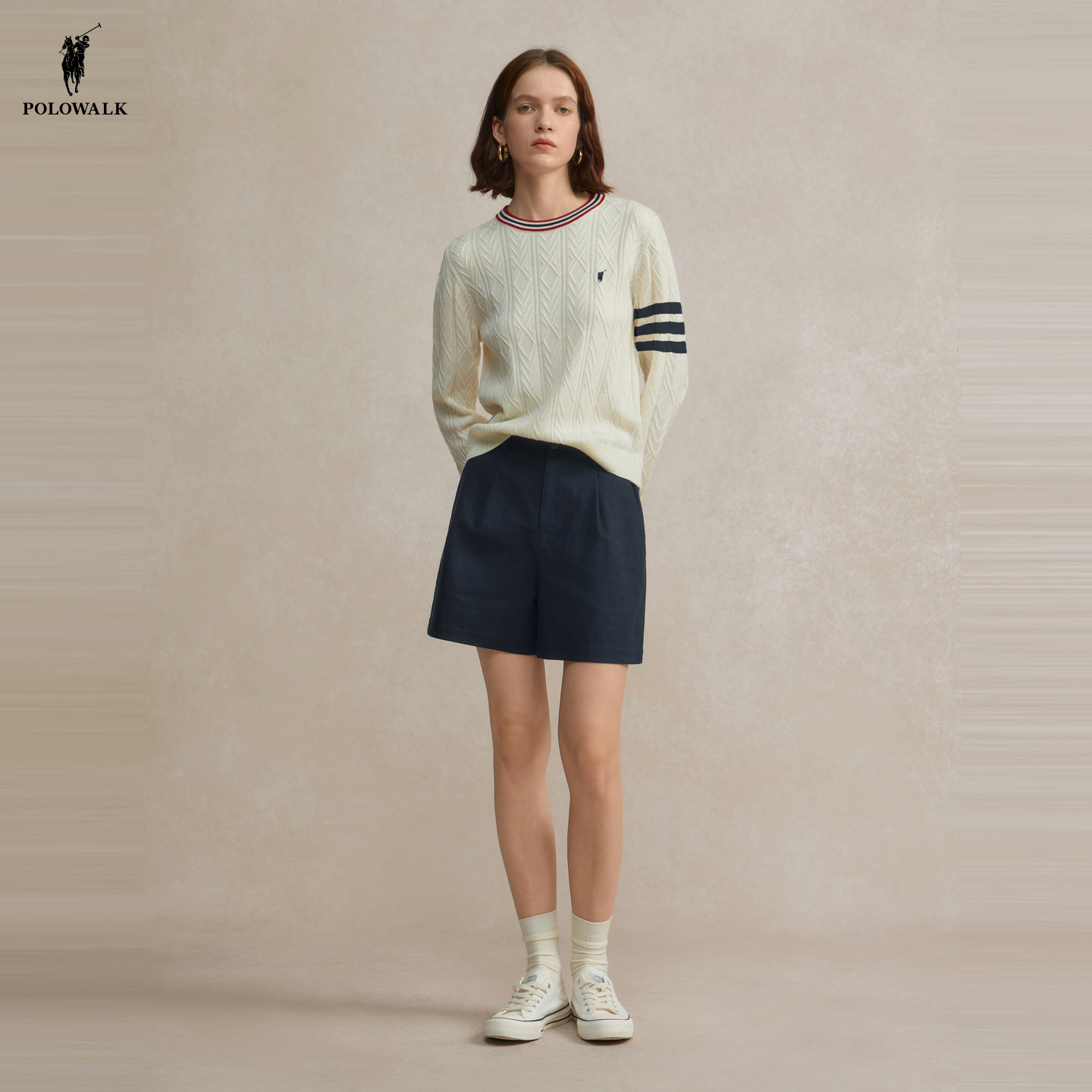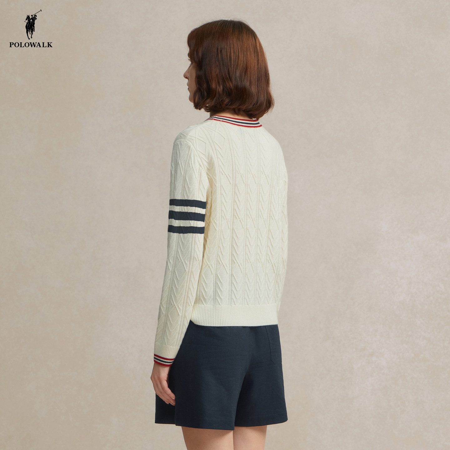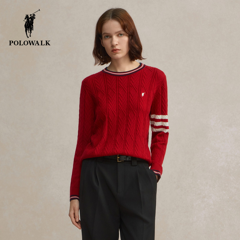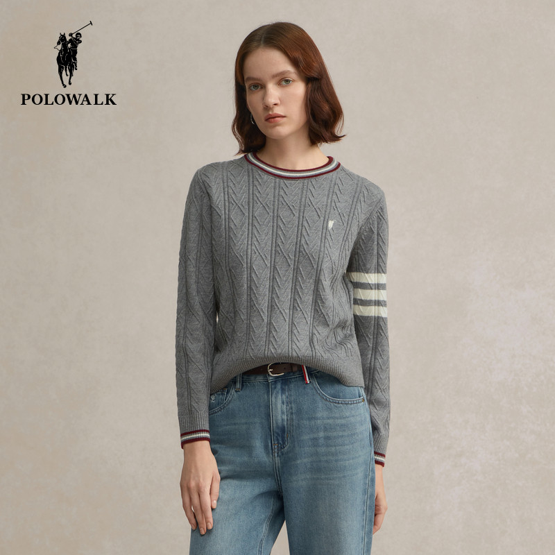 【含绵羊毛】POLOWALK女式长袖针织衫2025秋季新品提花显瘦上衣女