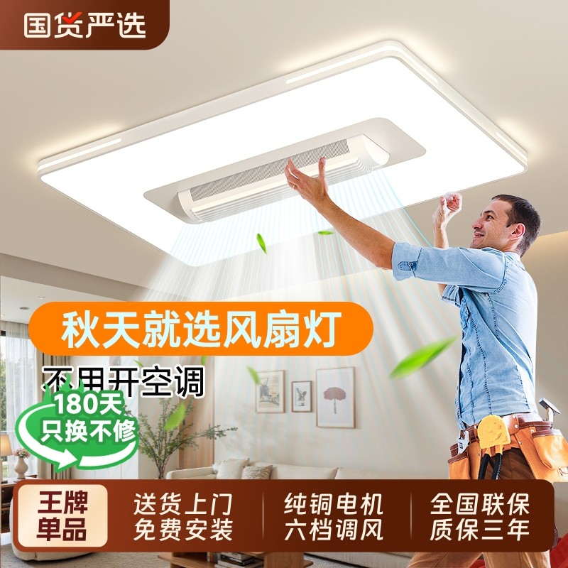 长城照明LED无叶风扇灯现代简约吸顶灯客厅卧室书房间餐厅吊扇灯