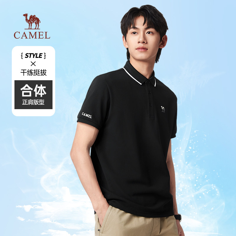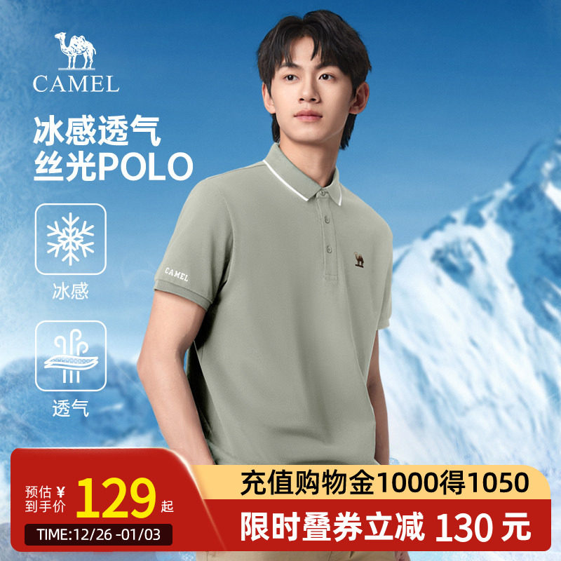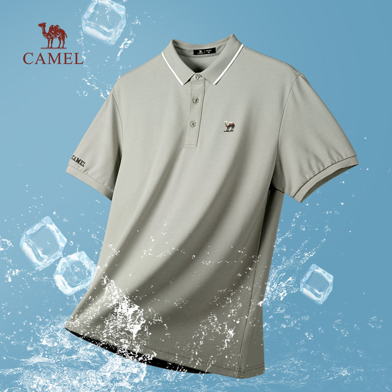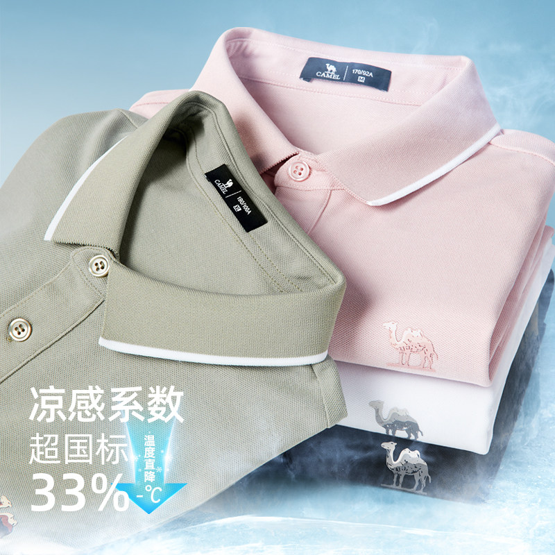 camel骆驼男装夏季新款POLO衫男士爸爸短袖冰丝商务翻领t恤男