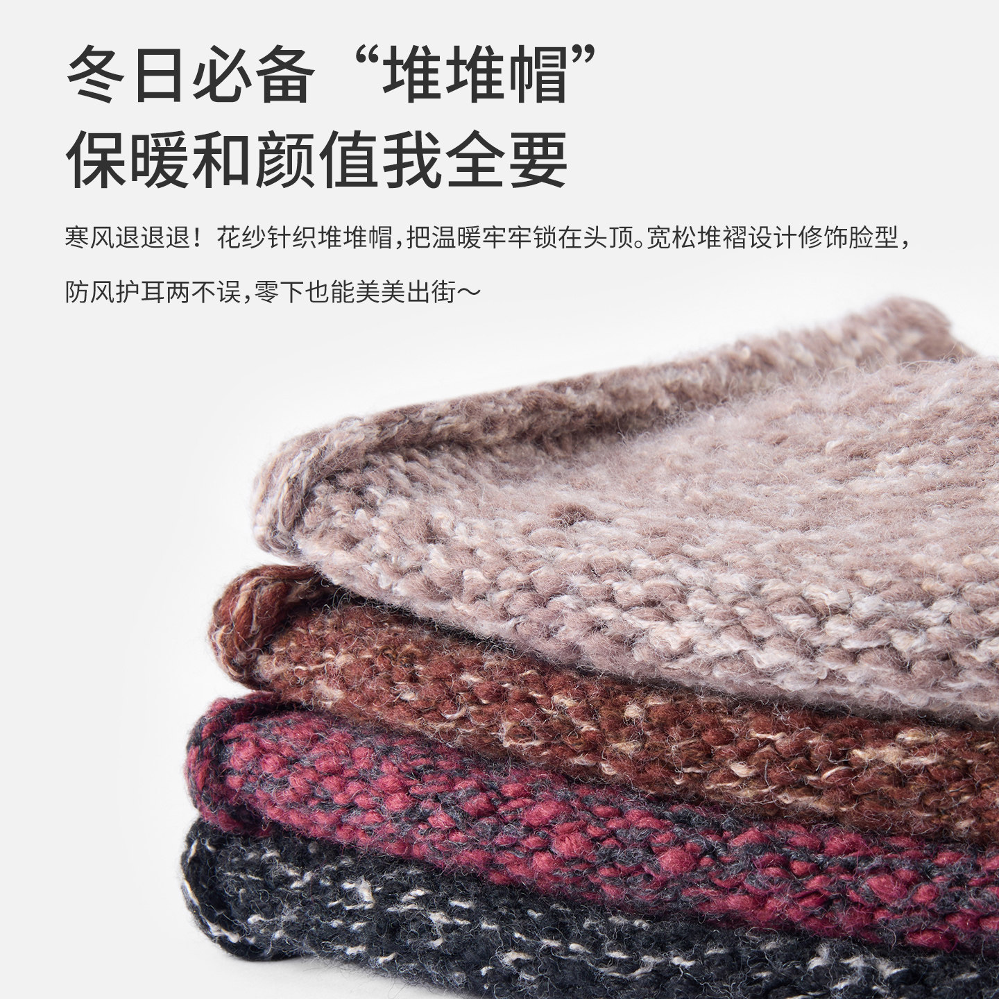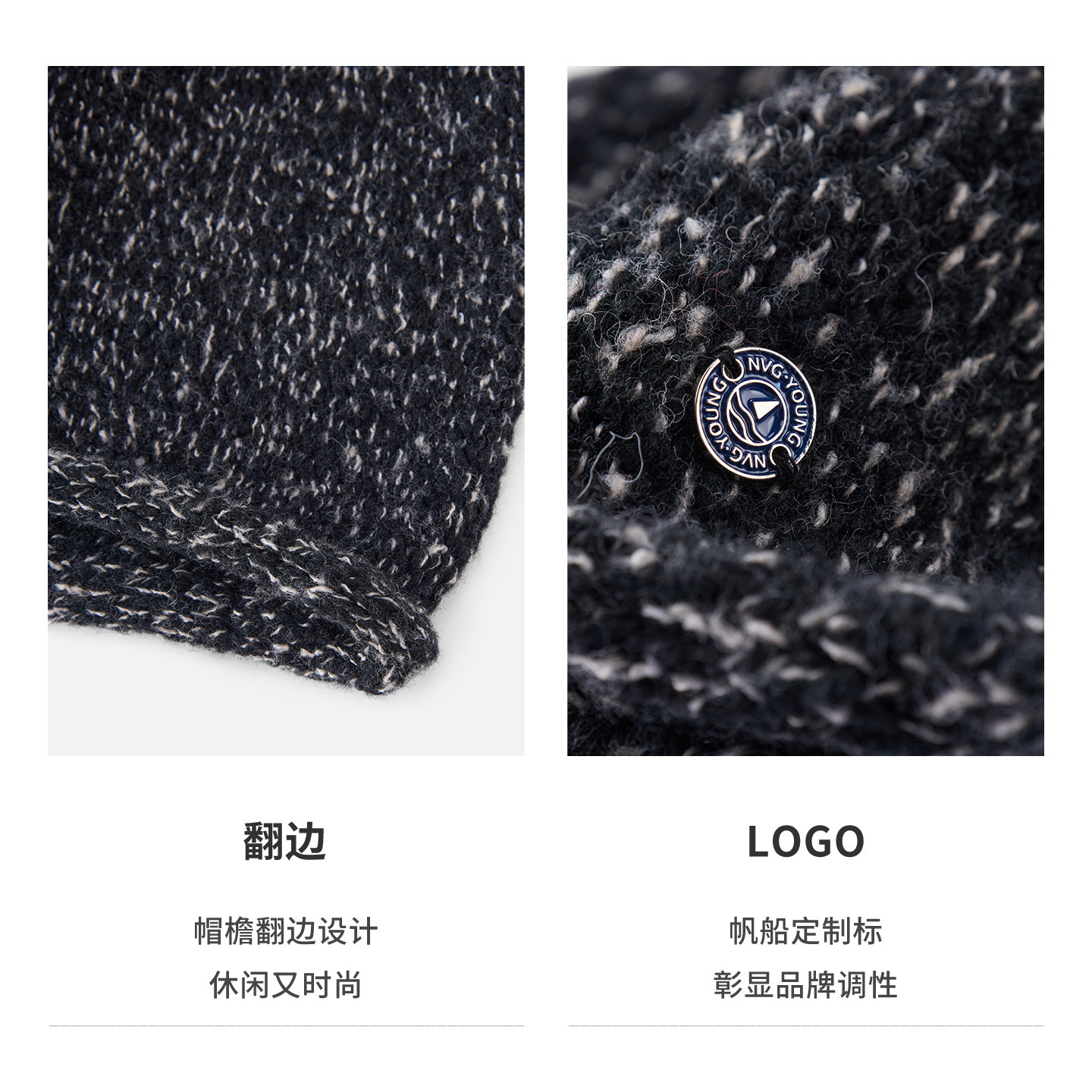 Navigare意大利小帆船羊毛卷边堆堆帽子男女冬季防风护耳针织冷帽