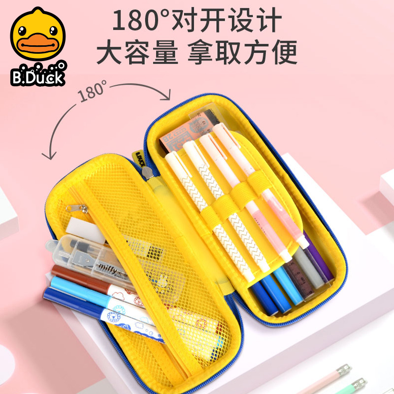 B.Duck小黄鸭小学生文具盒大容量儿童多功能盒子笔袋女孩铅笔盒男