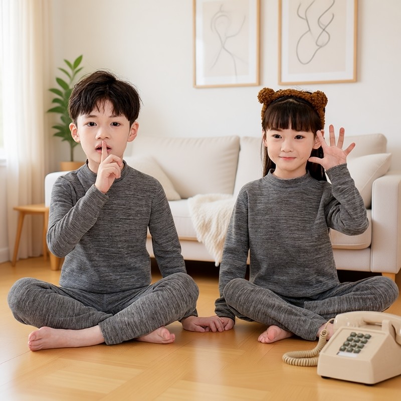 2025儿童中高领羊毛蚕丝保暖内衣男女童睡衣家居加厚秋衣秋裤套装