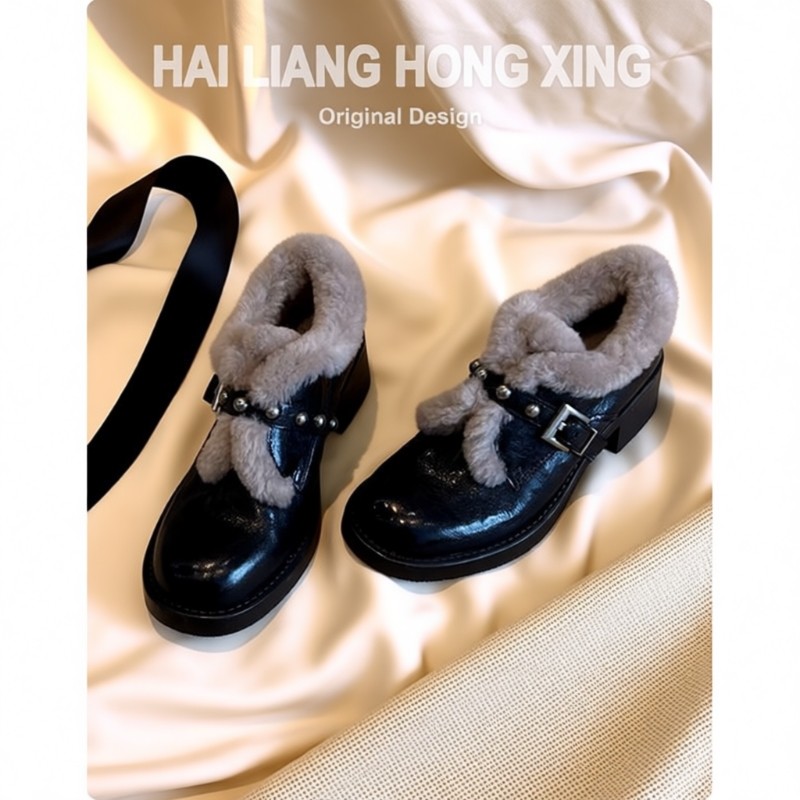 英伦风粗跟加绒乐福小皮鞋女2025秋冬新款百搭单鞋毛绒圆头中跟