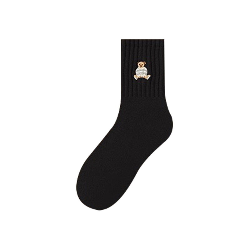 诸暨袜子女士秋冬季中筒袜女生可爱小熊卡通美拉德色春秋长袜条纹