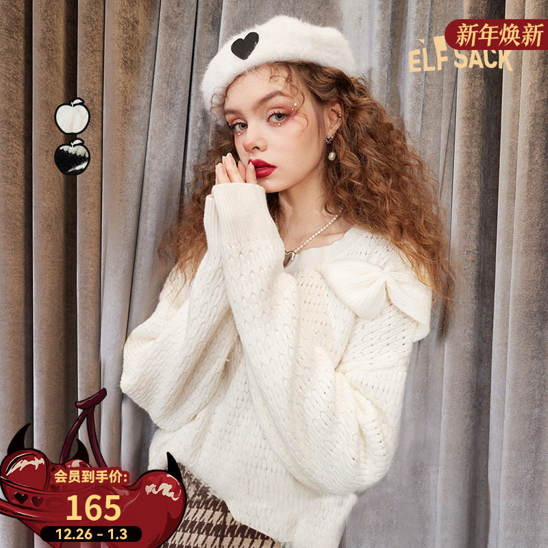 妖精的口袋白色蝴蝶结针织衫女2025秋冬新款甜美新年战袍韩系上衣