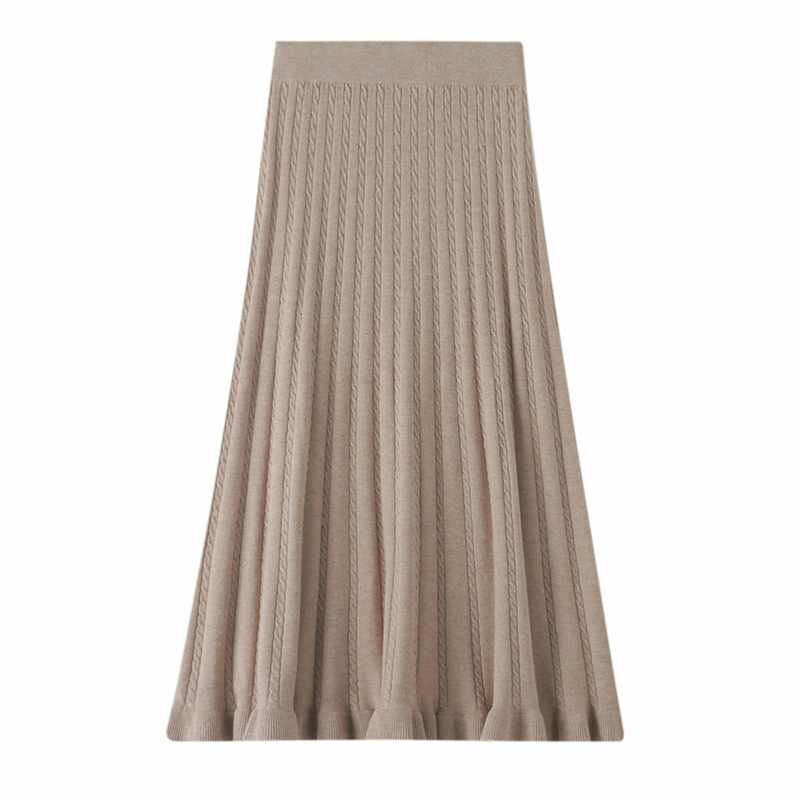 秋冬羊绒半身裙女秋冬新款中长高腰显瘦百褶大摆裙A字针织羊毛裙