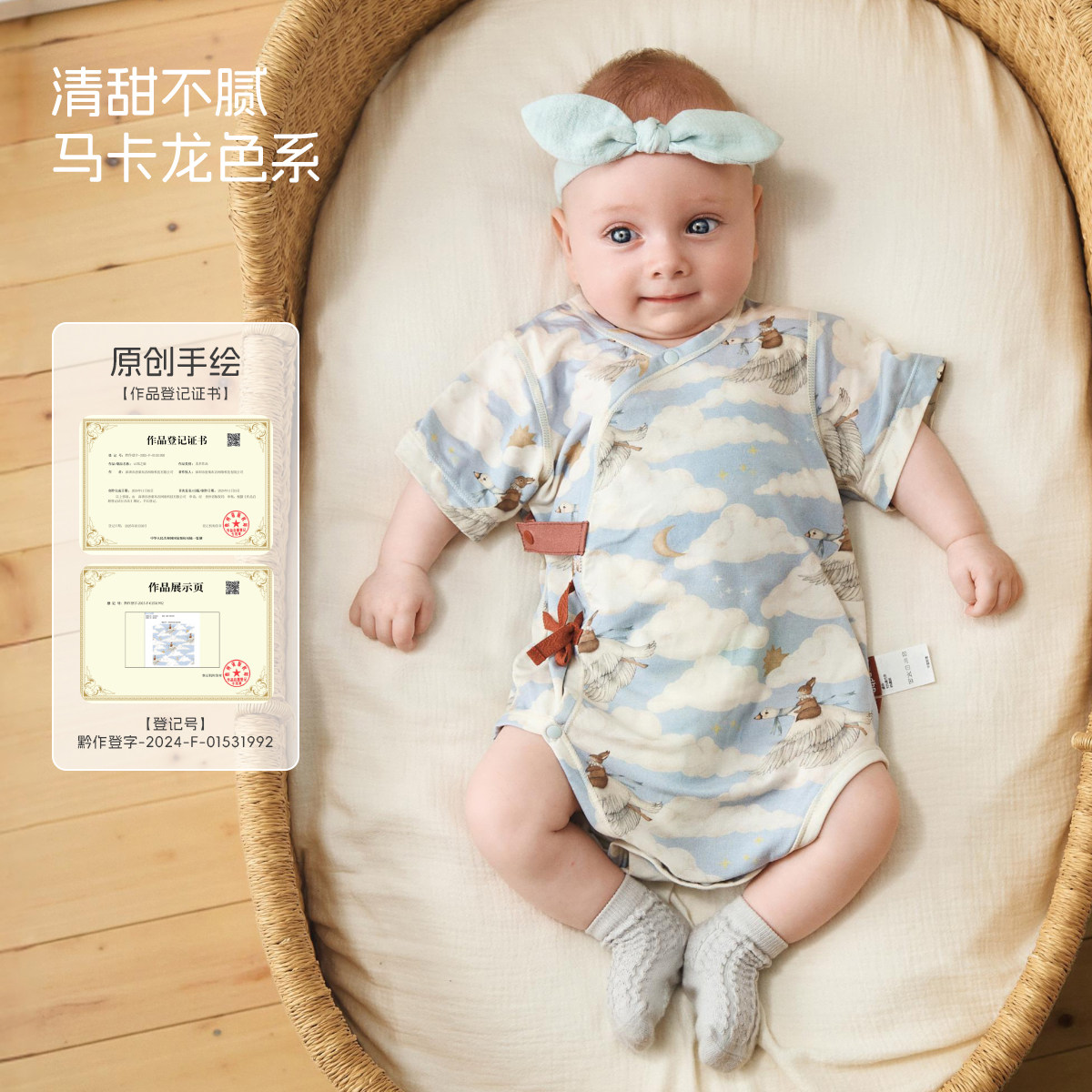 [云端之旅]aqpa爱帕新生儿婴儿衣服莫代尔夏季薄宝宝包屁衣连体衣