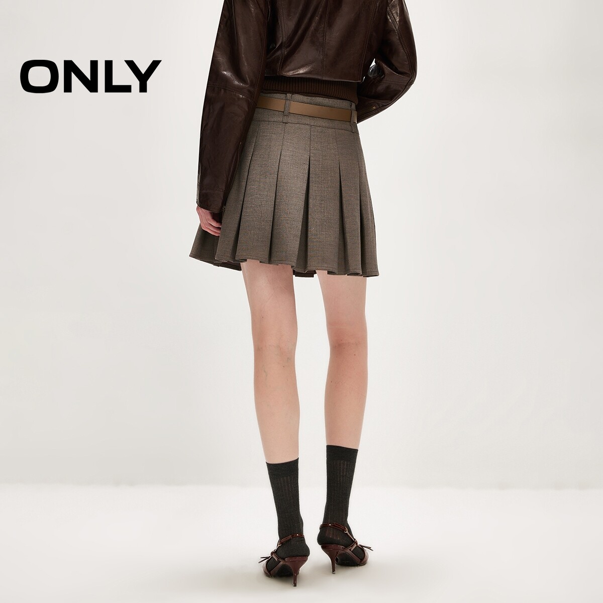 ONLY2026春季新款宽边腰头设计学院风A字显瘦百褶裙短裙半身裙女