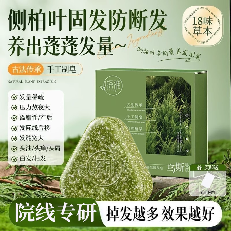 侧柏叶新疆乌斯曼手工洗发皂正品养发固发清洁去屑止痒蓬松去油
