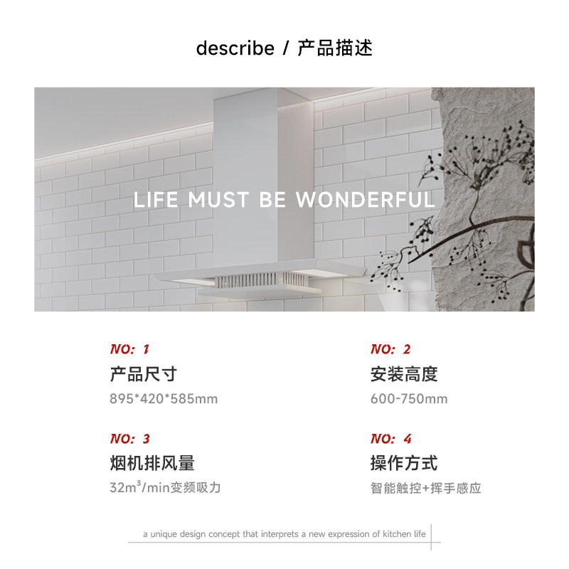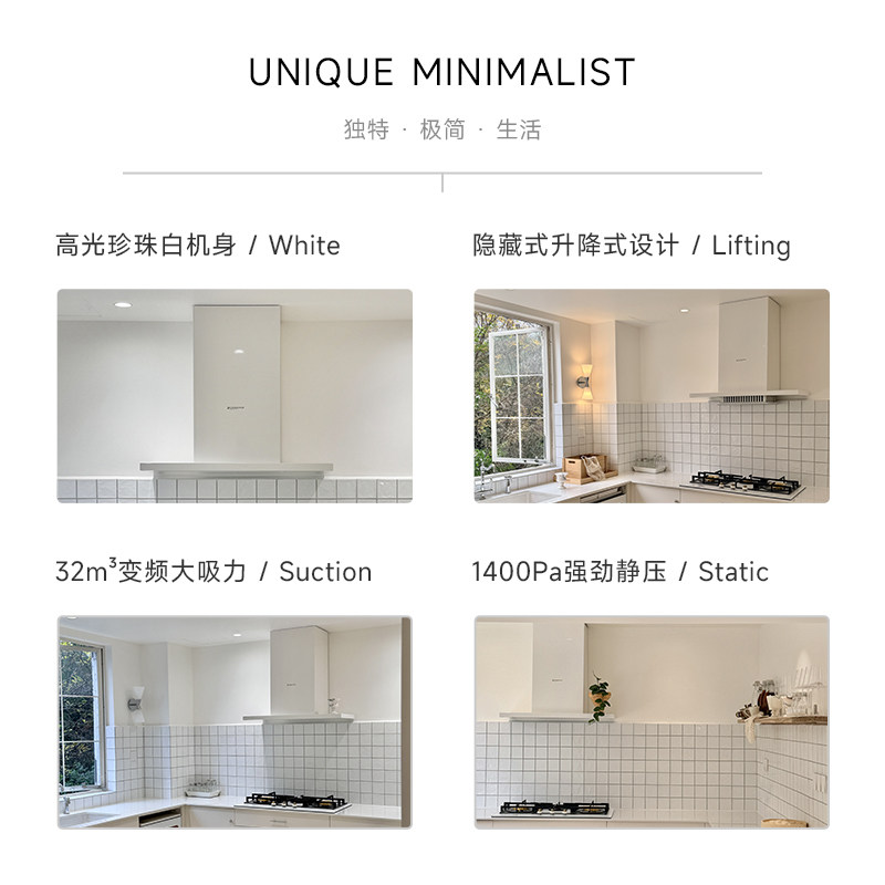凯曼萨A19白色超薄升降油烟机变频顶吸家用大吸力全自动清洗