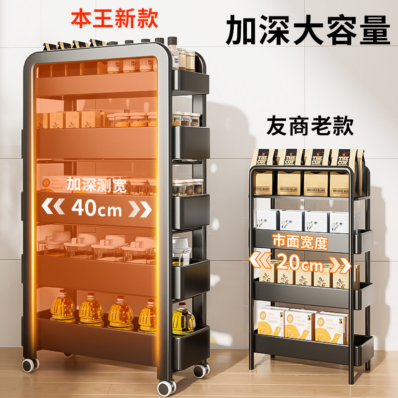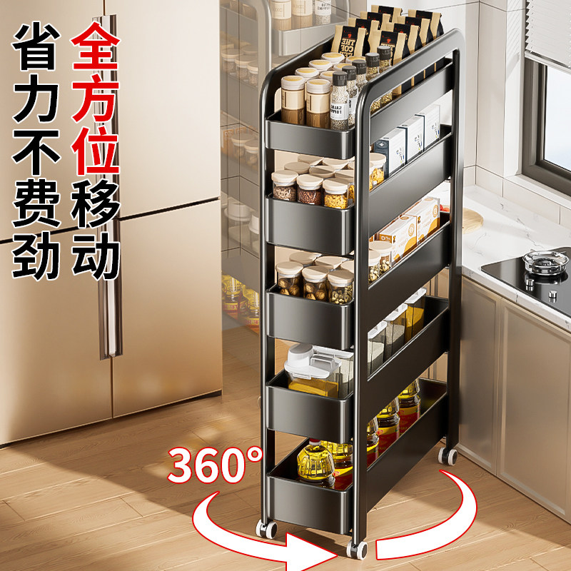 厨房门后夹缝置物架冰箱侧边极窄缝抽拉篮缝隙收纳柜卫生间小推车