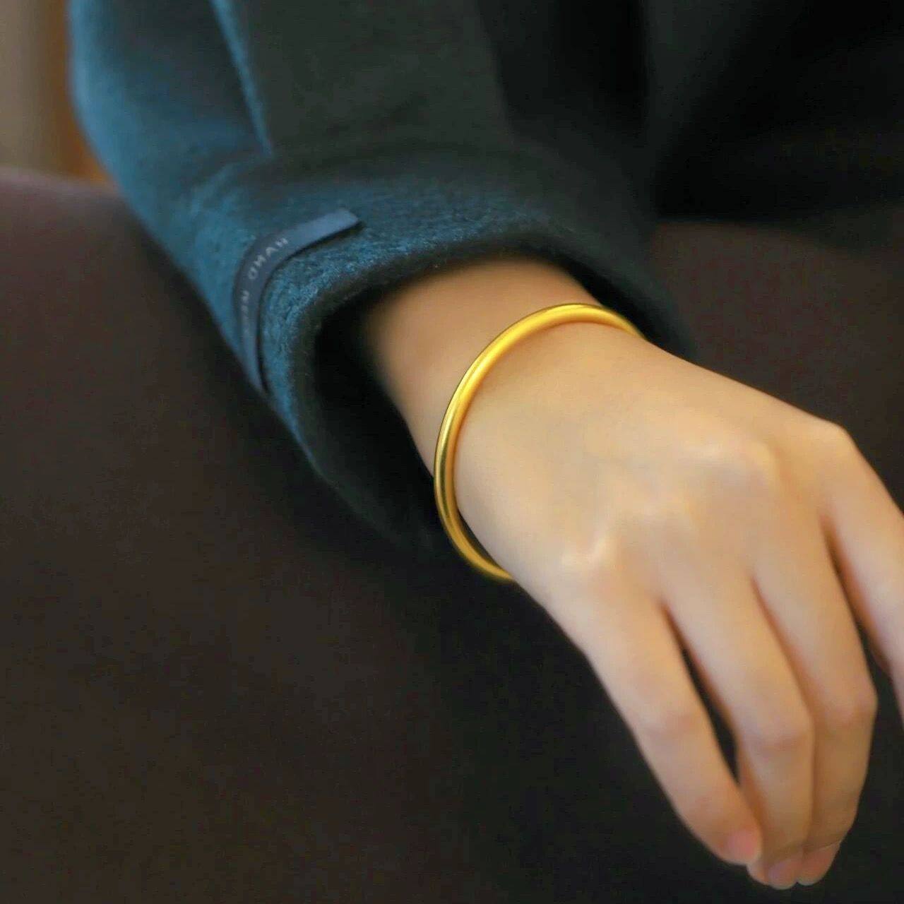古法传承素圈999沙金手镯子仿金手环妈妈礼物久不掉色实心铜合金