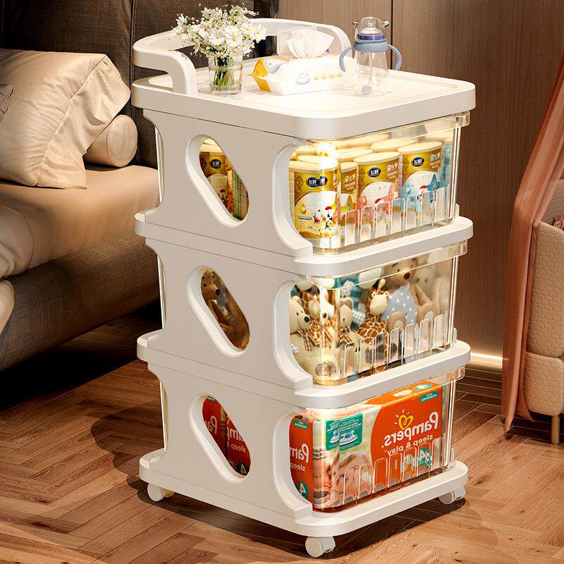 小推车零食置物架婴儿用品收纳柜多层收纳架可移动宝宝玩具收纳盒