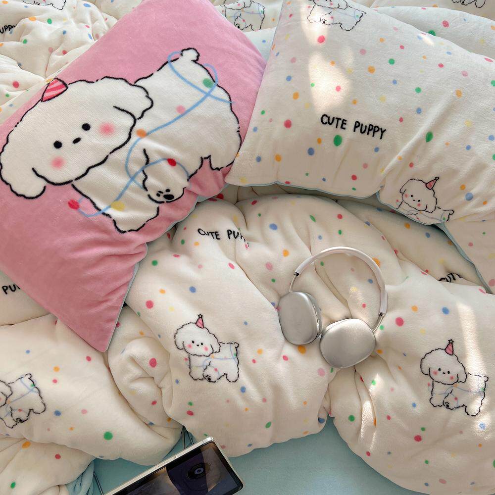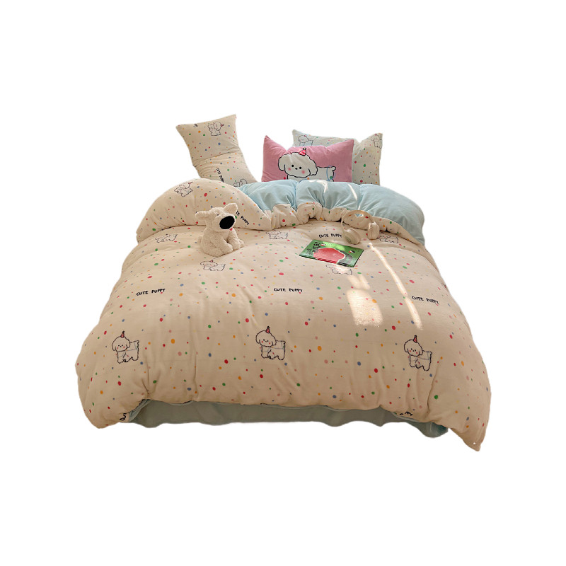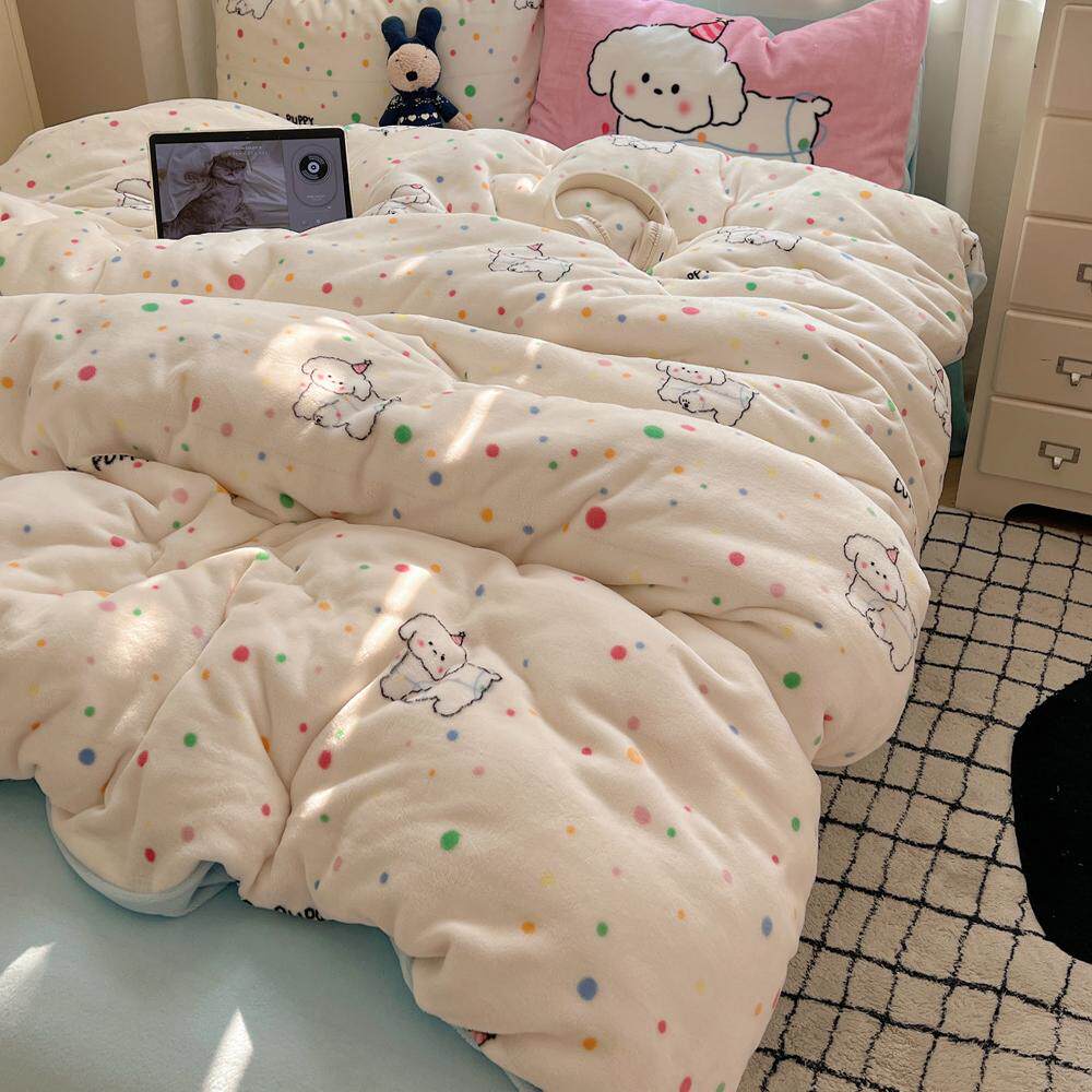 ins波点狗狗牛奶绒四件套秋冬加厚双面珊瑚绒被套学生宿舍三件套4