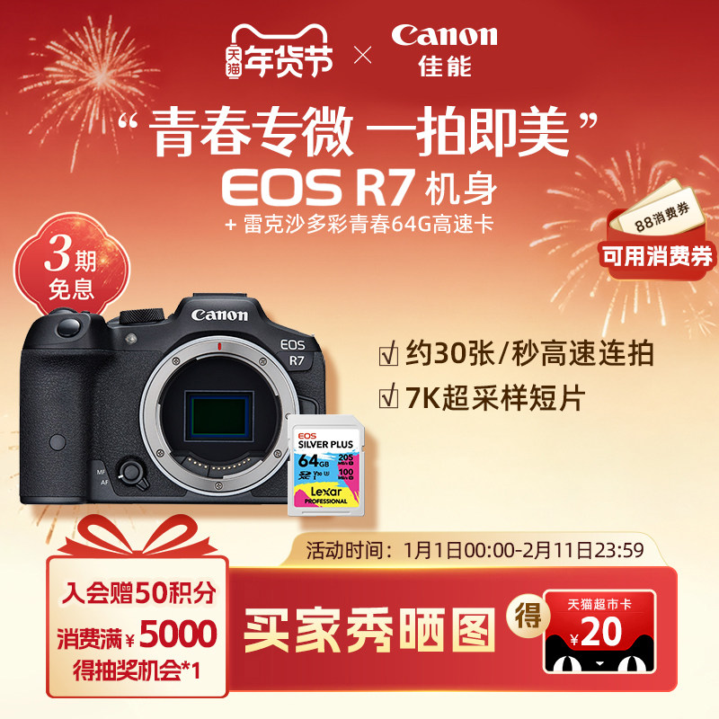 [旗舰店]Canon/佳能EOS R7机身/套机青春专微直播相机/4K短片相机