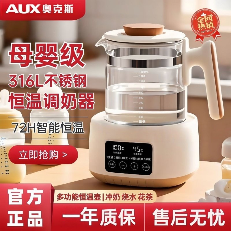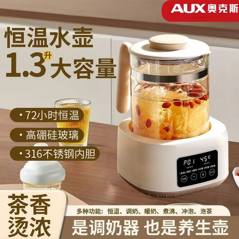 养生壶奥克斯316L不锈钢恒温调奶器家用保温电热水壶烧水壶玻璃