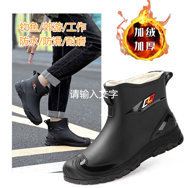 户外雨鞋外卖雨靴男士防水防滑厨房水鞋短筒耐磨加绒保暖胶鞋轻便