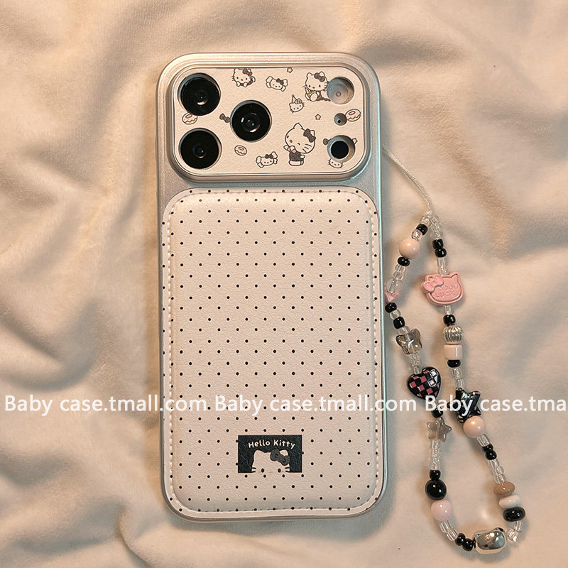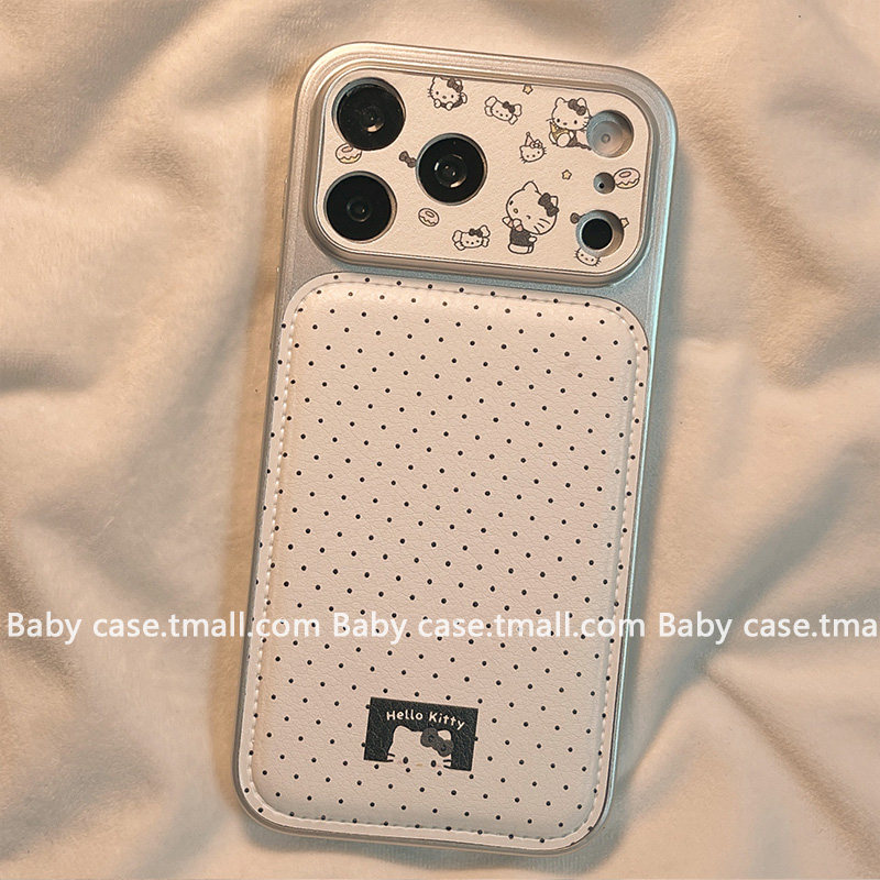 ins韩风电镀皮革波点凯蒂猫适用苹果手机壳