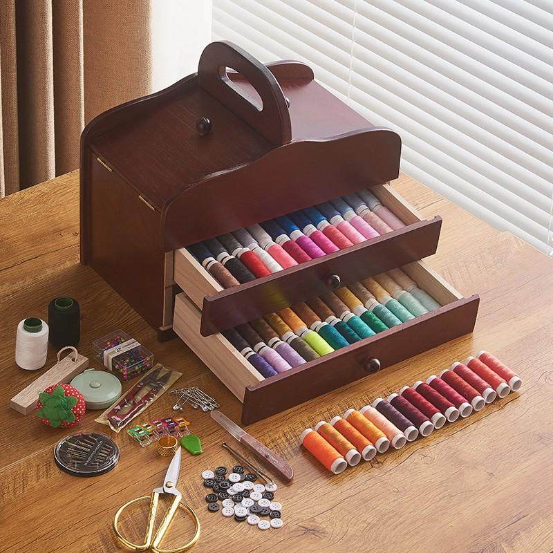22n实木针线盒套装家用批发十字绣手工具针线包收纳盒陪嫁结婚款