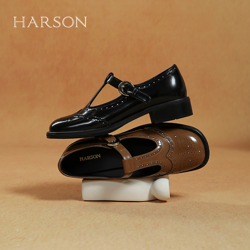 哈森复古玛丽珍女单鞋春季新款英伦风布洛克鞋小皮鞋HS252511