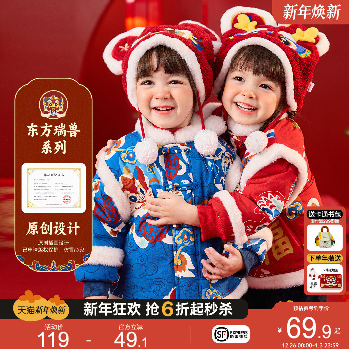嘟嘟家儿童拜年服冬季男童红色喜庆唐装女童棉服宝宝中国风过年装