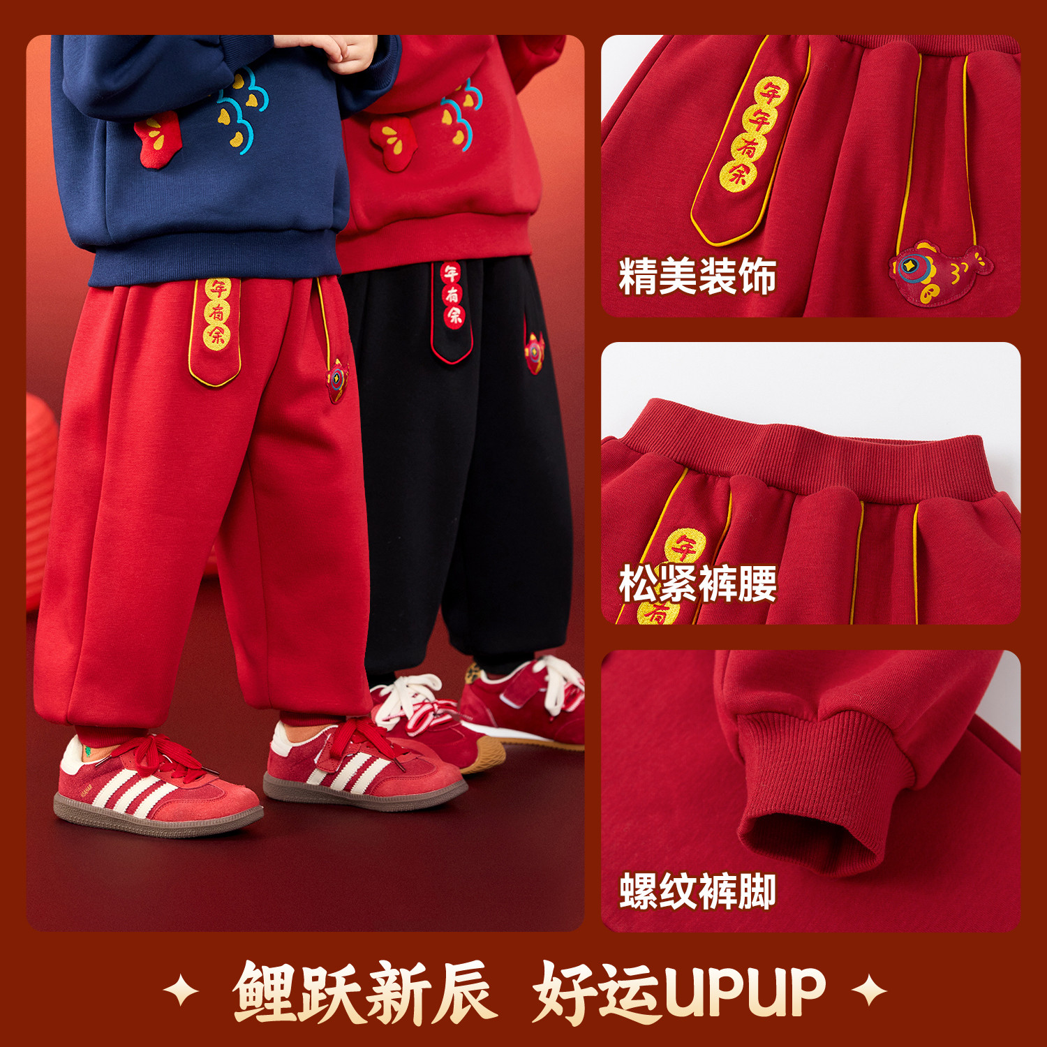 嘟嘟家儿童唐装裤子冬季加绒宝宝拜年服喜庆男童新年装衣服新中式