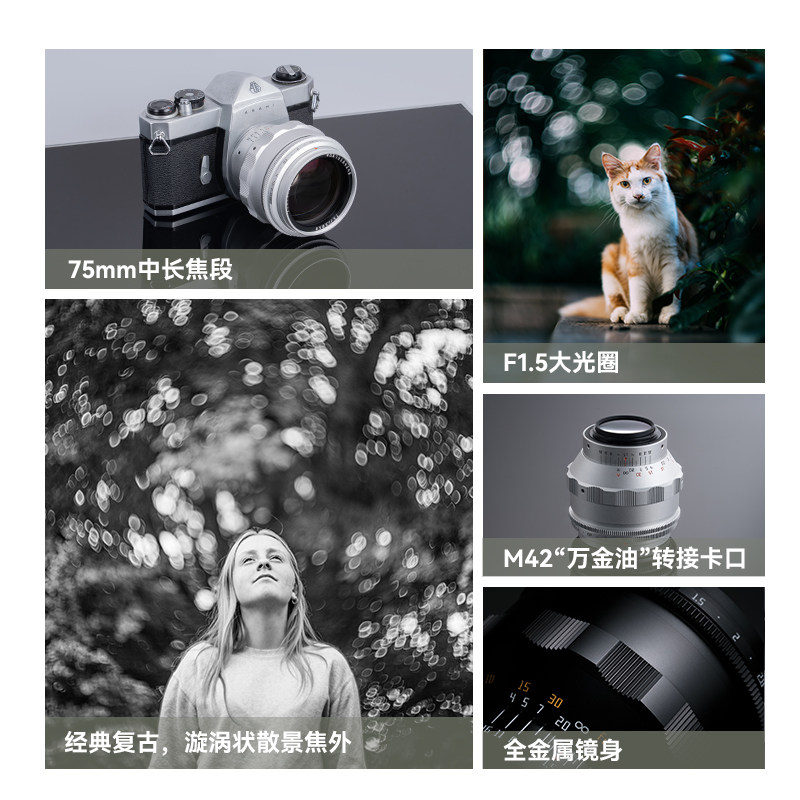 铭匠75mm f1.5旋焦镜头漩涡焦外适用索尼E尼康Z松下L蔡司铭匠大B