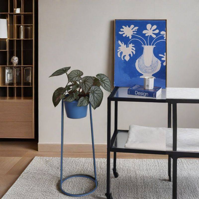 现代简约花架客厅落地式花盆架室内阳台通道转角花架子金属奶油
