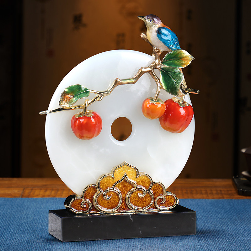 天然玉石平安扣摆件客厅酒柜中式锦鲤装饰博古架乔迁新居开业礼物