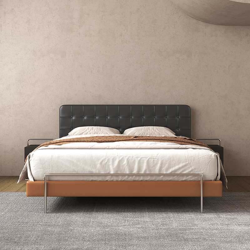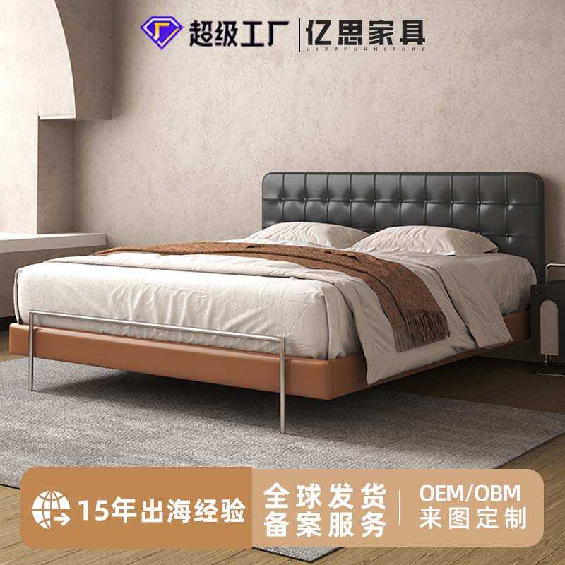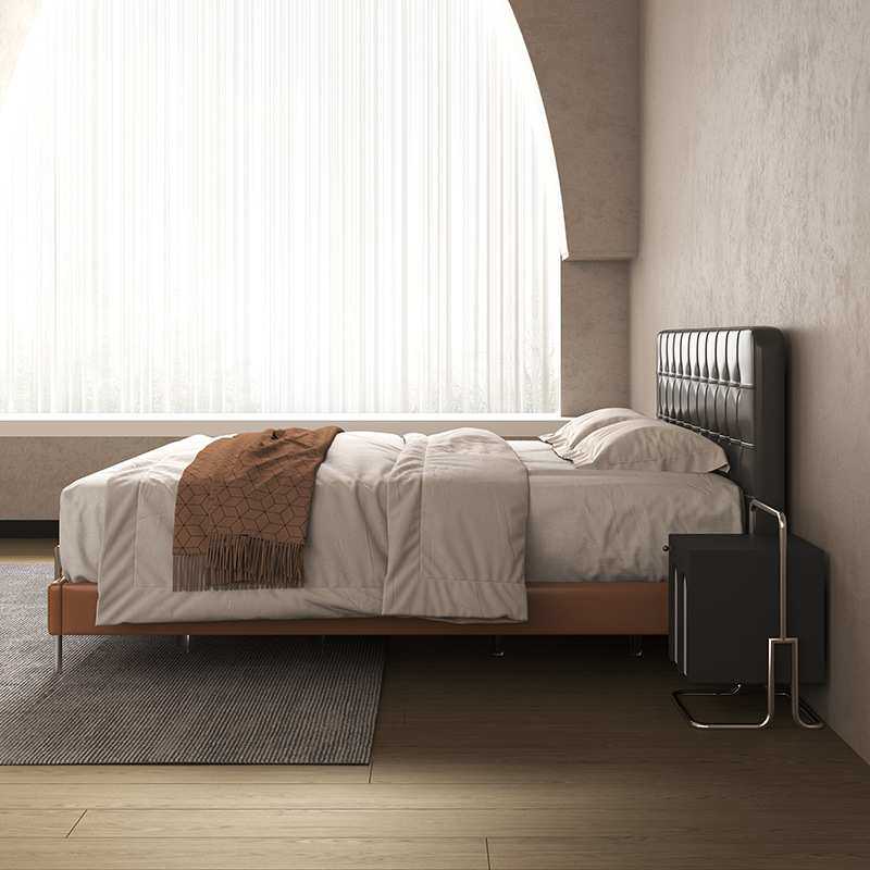 中古风真皮床简约小户型北欧皮艺双人床复古软包主卧2*2米大床