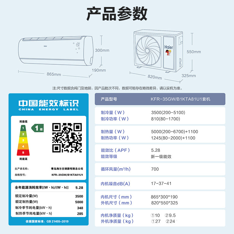 海尔小红花空调新一级能效1.5匹变频冷暖家用劲爽挂机35LCA