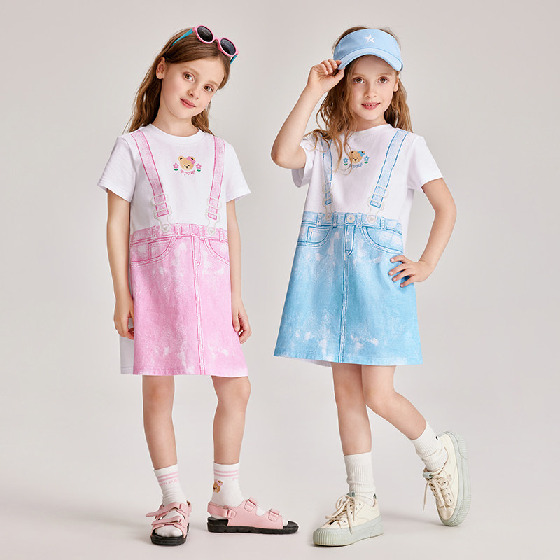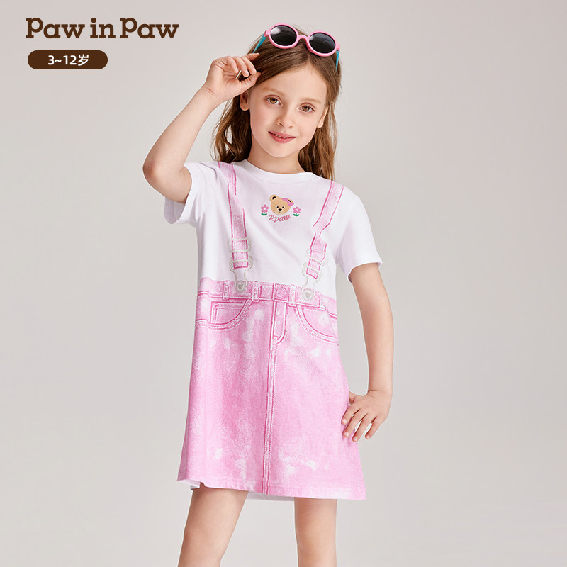 PawinPaw卡通小熊童装夏女童纯棉休闲假背带T恤连衣裙
