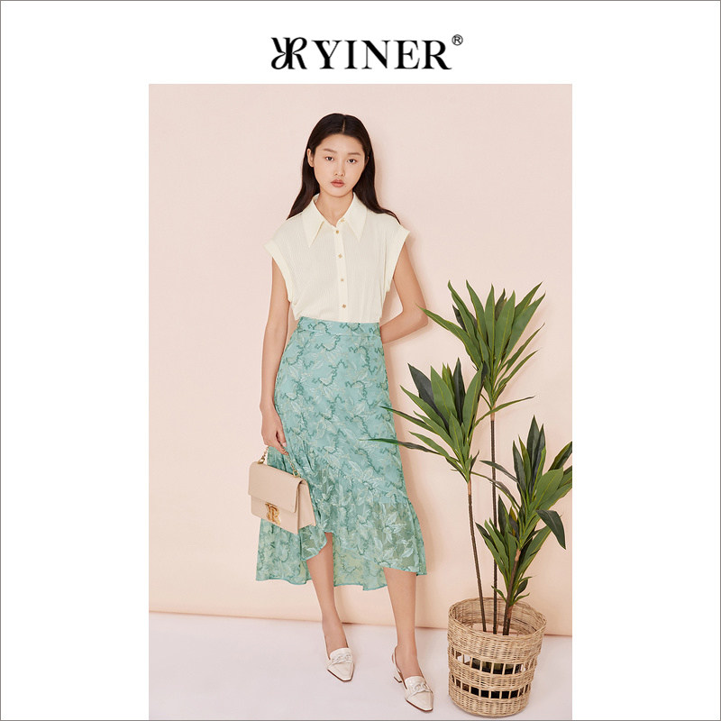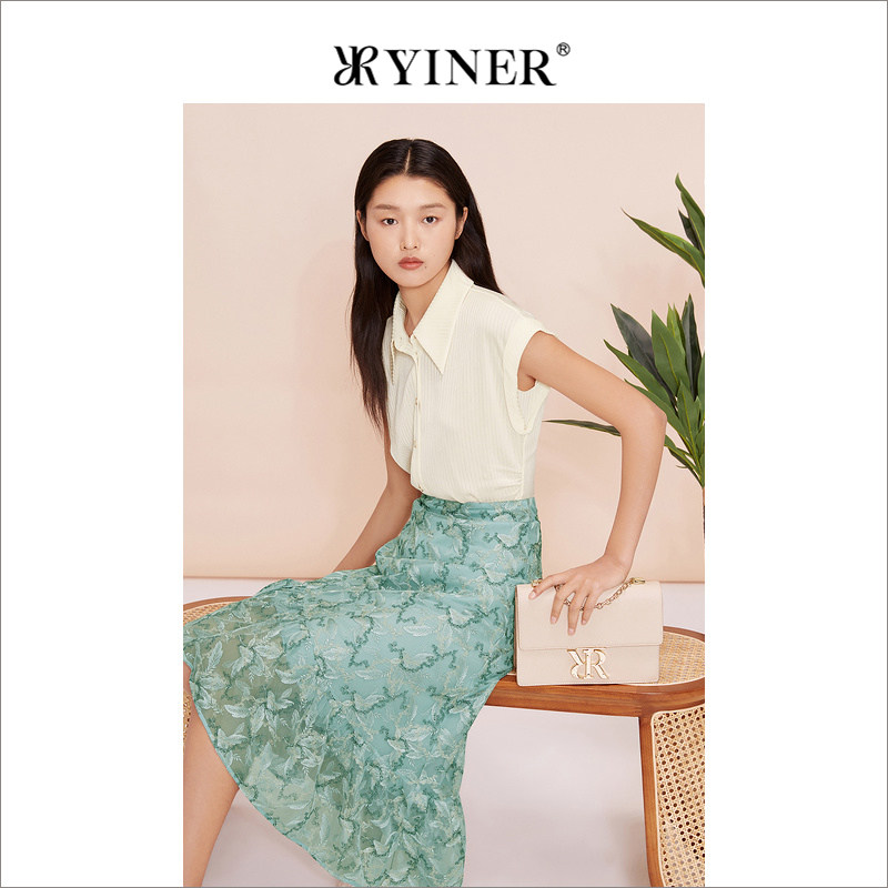 YINER音儿女装夏季法式优雅不规则绣花半身裙