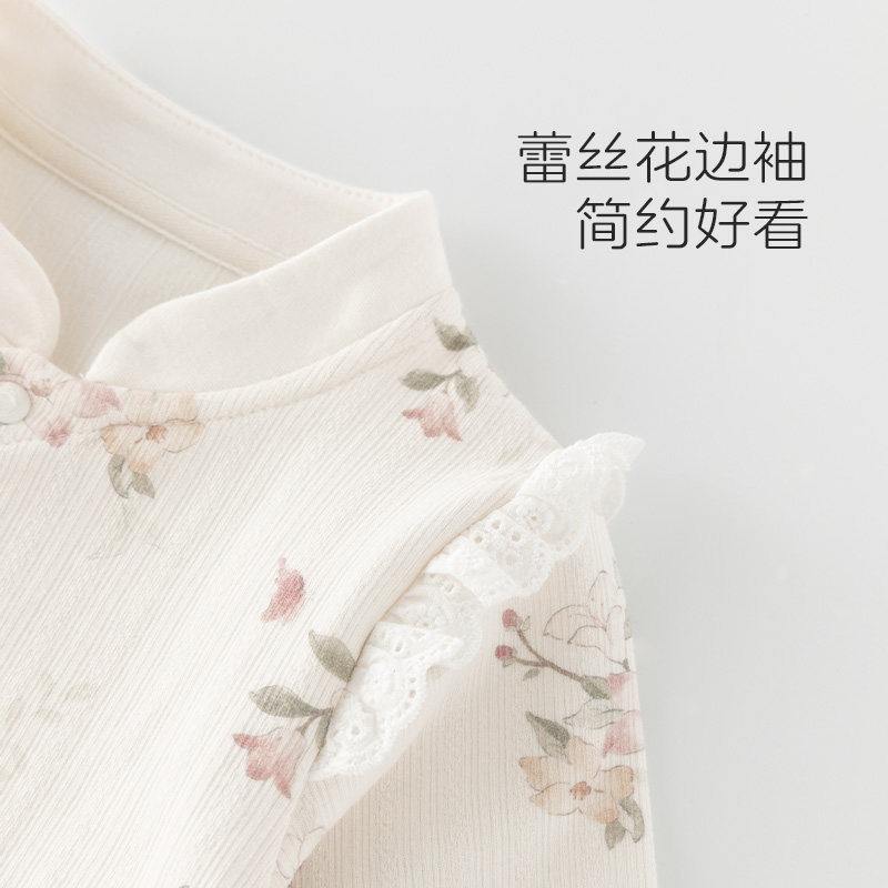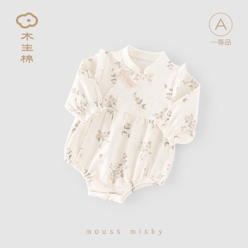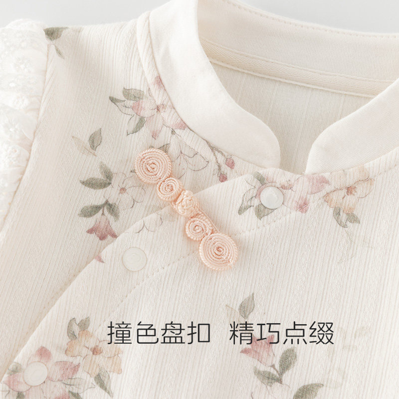 木生棉新生儿包屁衣春秋婴幼儿连体三角哈衣女宝宝碎花和尚服爬服