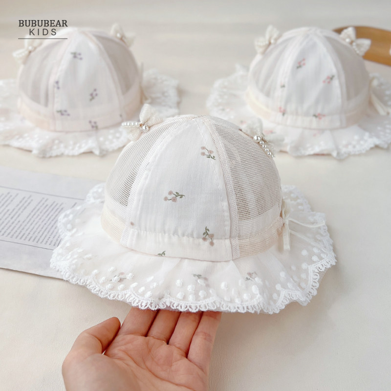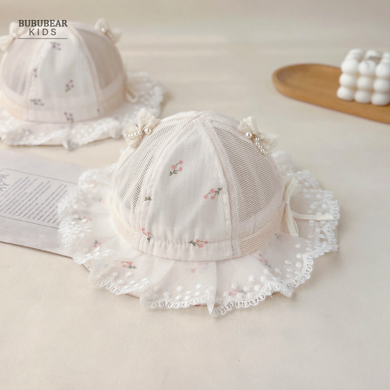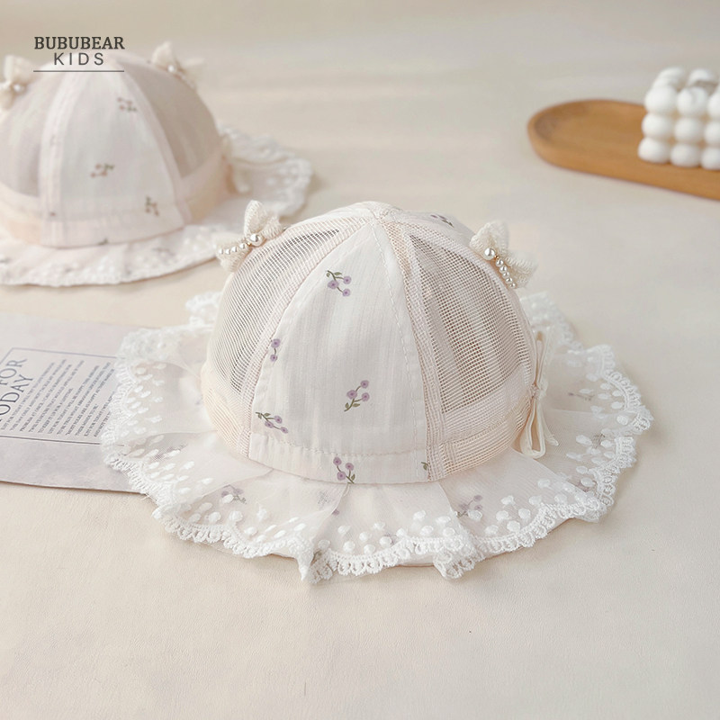 女宝宝帽子夏季薄款透气渔夫帽婴儿夏天遮阳帽小月龄公主帽太阳帽
