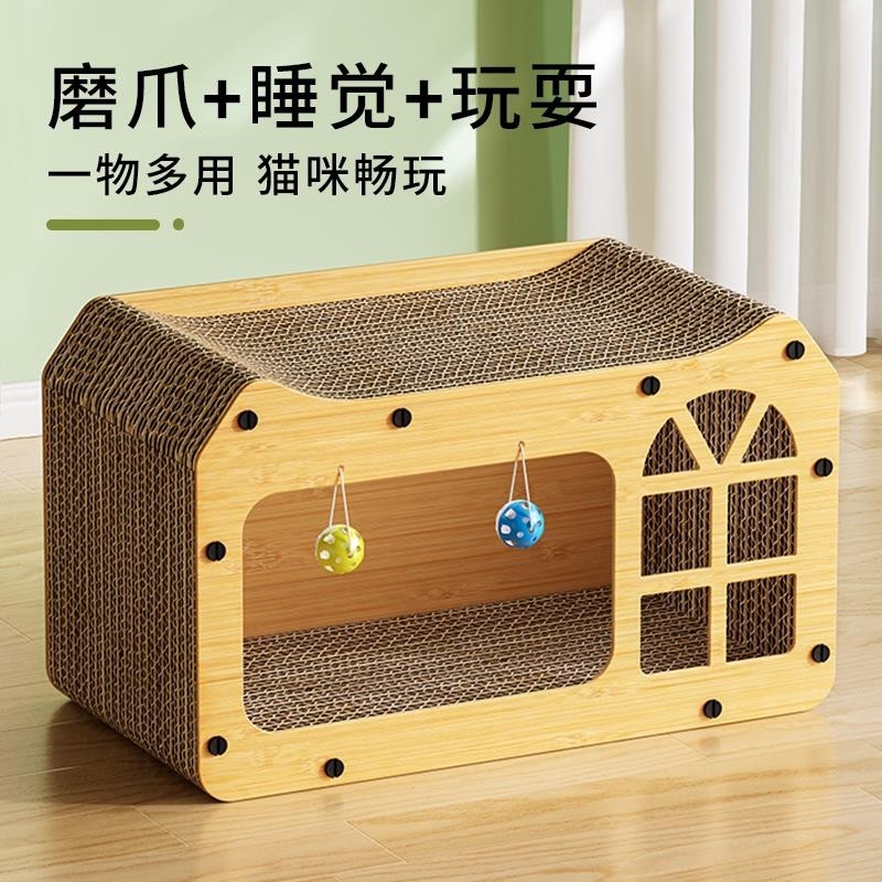 猫窝猫抓板一体耐磨不易掉屑瓦楞纸立式猫爪板猫屋多功能磨爪玩具